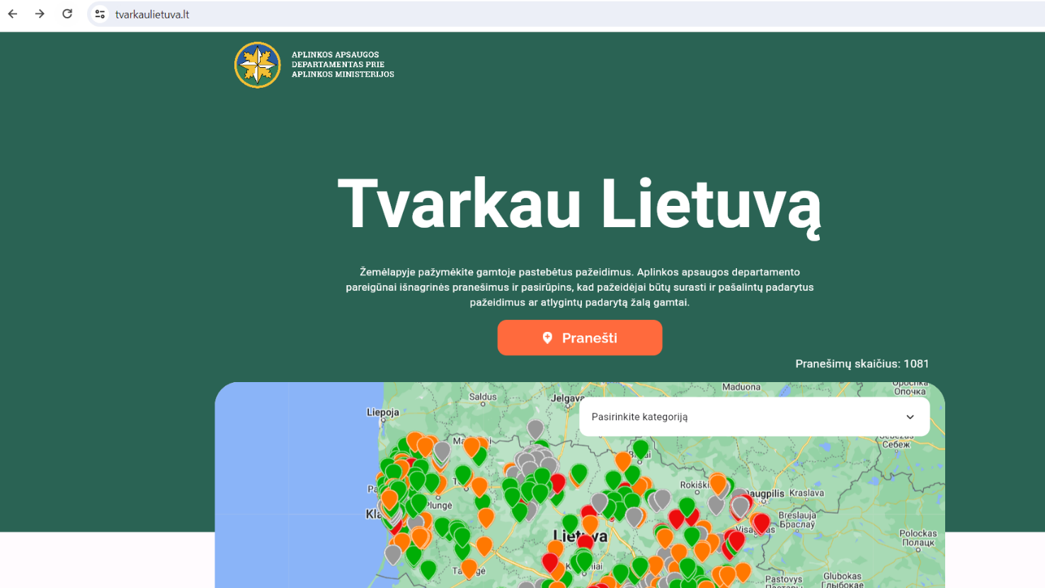 Keliaudami gamtoje Lietuvos gyventojai aktyviai naudojasi interaktyviuoju žemėlapiu „Tvarkau Lietuvą“ pranešdami apie pastebėtus nelegalius sąvartynus, todėl ir toliau plečiamas jo funkcionalumas, – atsirado nauja, šiais metais ypač aktuali pranešimų kategorija – kenkėjų apniktos ar nuvirtusios eglės.