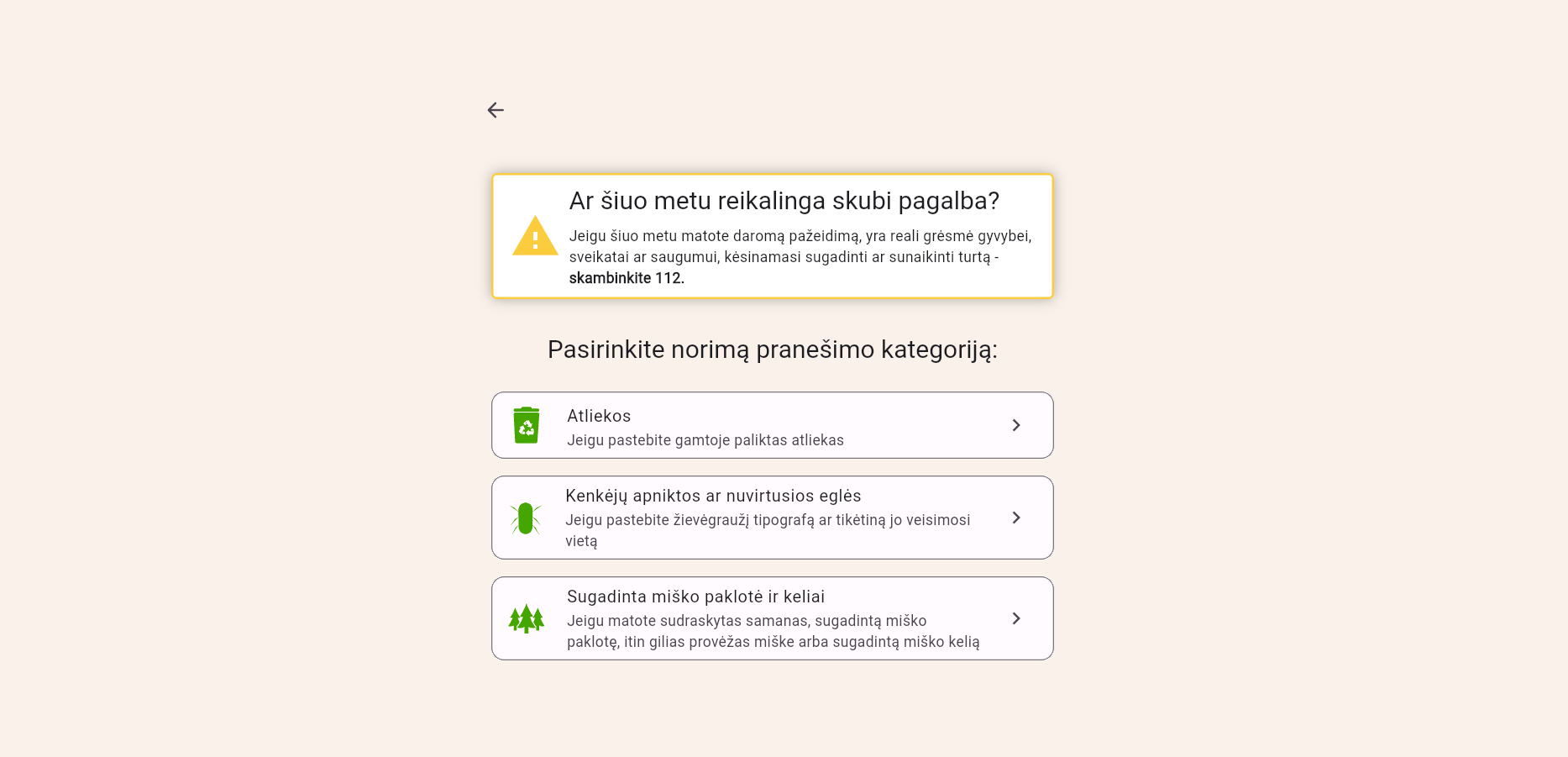 Gyventojai norėdami pranešti apie pažeidimą, turės pasirinkti norimą kategoriją („atliekos“, „sugadinta miško paklotė ir keliai“ arba „kenkėjų apniktos ar nuvirtusios eglės“). Tuomet telefonu – nufotografuoti pažeistus medžius, pažymėti vietą žemėlapyje, aprašyti situaciją ir pridėti nuotraukas.