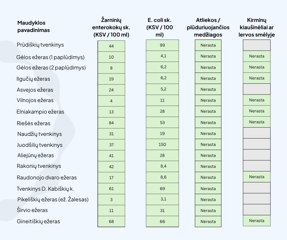 Buvo tikrinamos šios maudyklos: