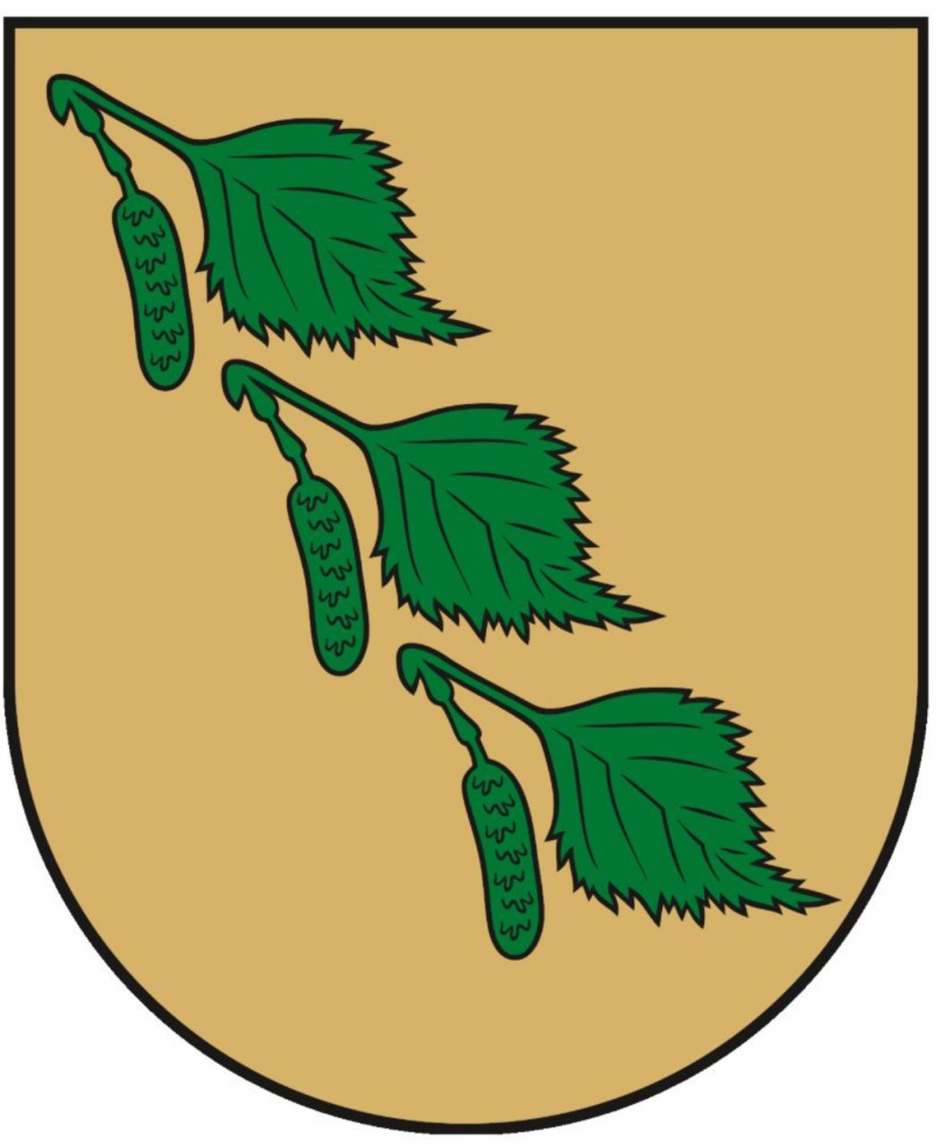 The golden field of the armorial shield depicts three green birch leaves with the same-coloured scissors in the ribbon position. The golden colour of the shield’s field symbolises wisdom and virtue. The symbolism of this plant is not chosen by chance. The birch leaves are the “talking” figures of the coat of arms, alluding to the name of the town. Various parts of the birch tree also have healing properties and are used as a remedy for many diseases. In Slavic culture, the birch tree is considered a symbol of youth and life.