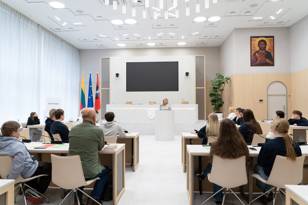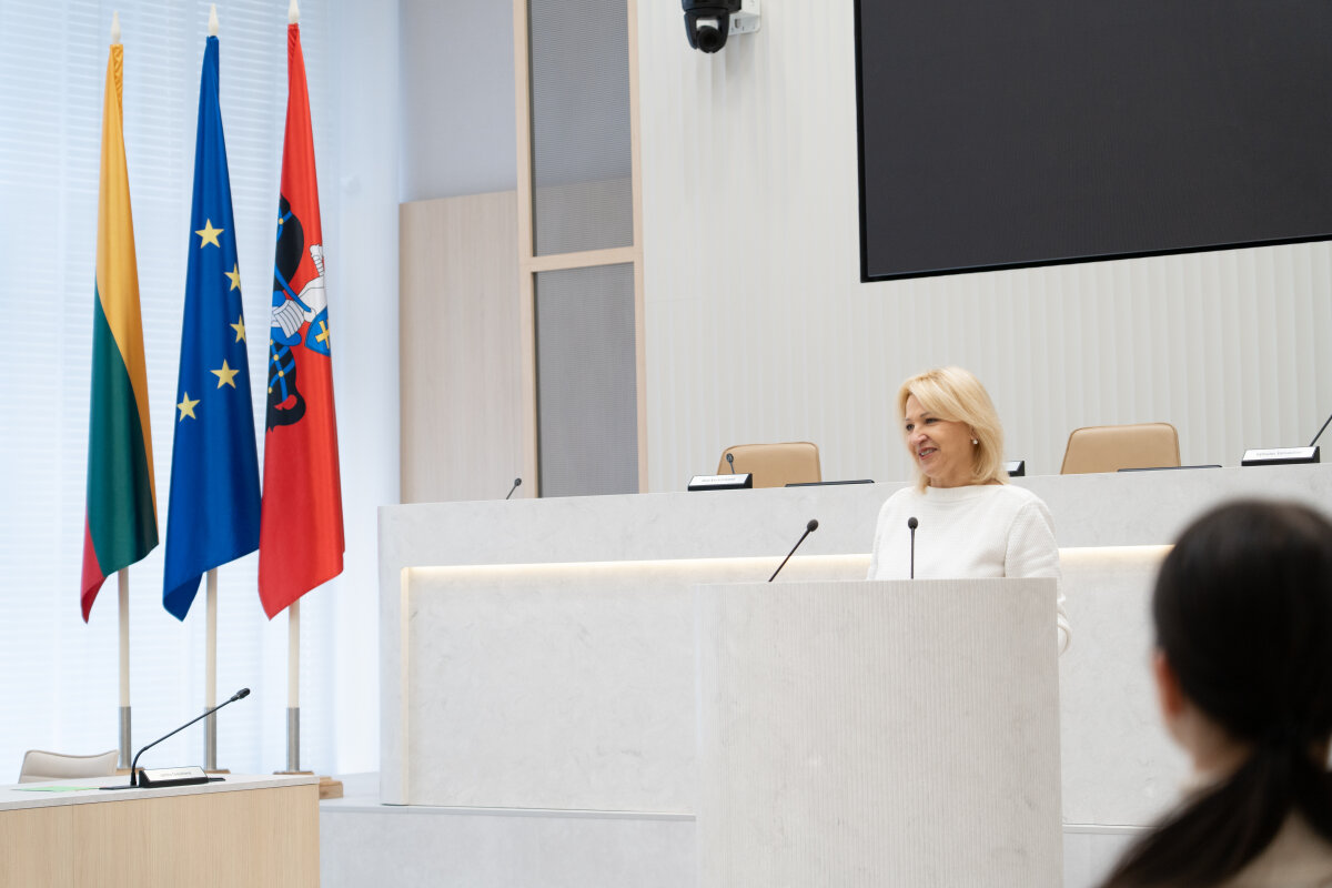 Moksleivius pasveikino ir tarybos simuliaciją atidarė Vilniaus rajono vicemerė Edita Tamošiūnaitė.