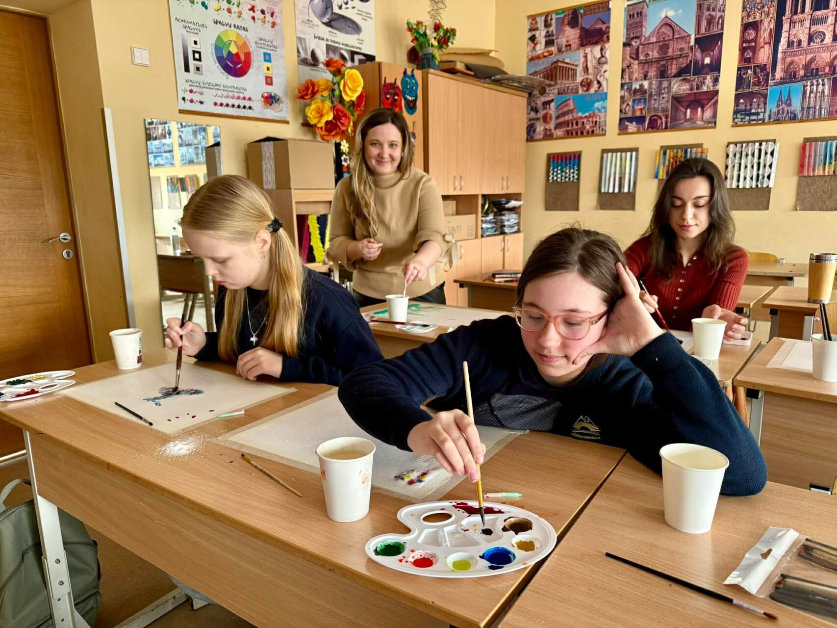 2026 m. kovo-balandžio mėnesiais „Tūkstantmečio mokyklų II“ programos veiklų metu įgyvendinti dailės terapijos užsiėmimai (40 ak. val.) gimnazijoje tapo ne tik kūrybine veikla, bet ir svarbia erdve sustoti, išgirsti save ir kitą. Dailės terapijos veiklos subūrė tiek mokinius, tiek pagalbos mokiniui specialistus į bendrą patyriminę erdvę, kurioje per spalvas, formas ir simbolius buvo galima išreikšti tai, ką kartais sunku įvardyti žodžiais. Šių veiklų metu dalyviai turėjo galimybę išreikšti nerimą, baimę, sumišusius ir sunkiai įvardijamus jausmus, o kūrybinis procesas padėjo mažinti stresą ir stiprinti gebėjimą veikti įtampos sąlygomis. Procesas buvo orientuotas ne į rezultatą, o į patyrimą – į galimybę jausti, reflektuoti ir būti išgirstam.