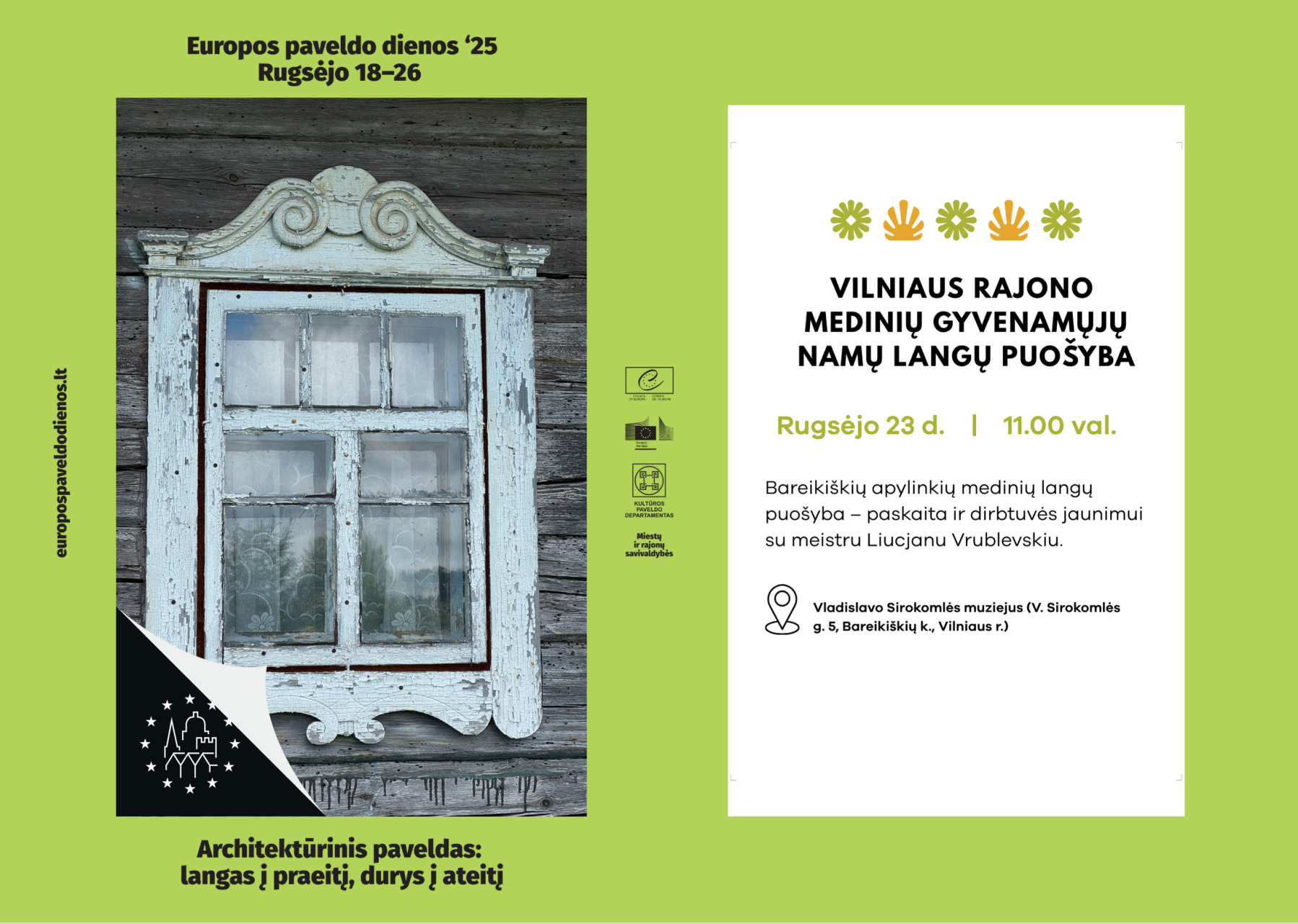 Daugiau informacijos apie renginį: https://europospaveldodienos.lt/renginys/vilniaus-rajono-mediniu-namu-langu-puosyba/