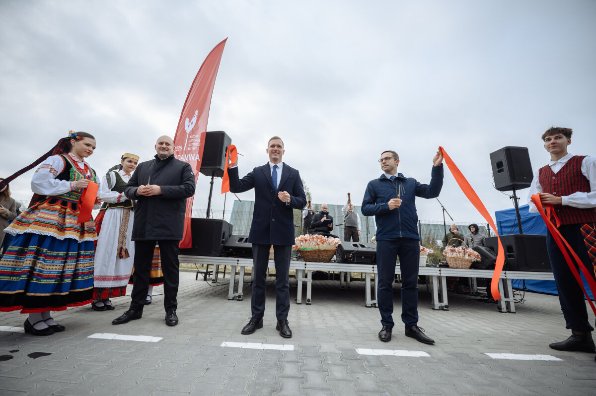 Atidarymo metu simbolinę juostą perkirpo Vilniaus rajono meras Robert Duchnevič, Šalčininkų rajono savivaldybės administracijos direktorius Gžegož Jurgo ir Rudaminos turgavietės administratorius – UAB „Nemėžio komunalininkas“ direktorius Artur Danulevič.