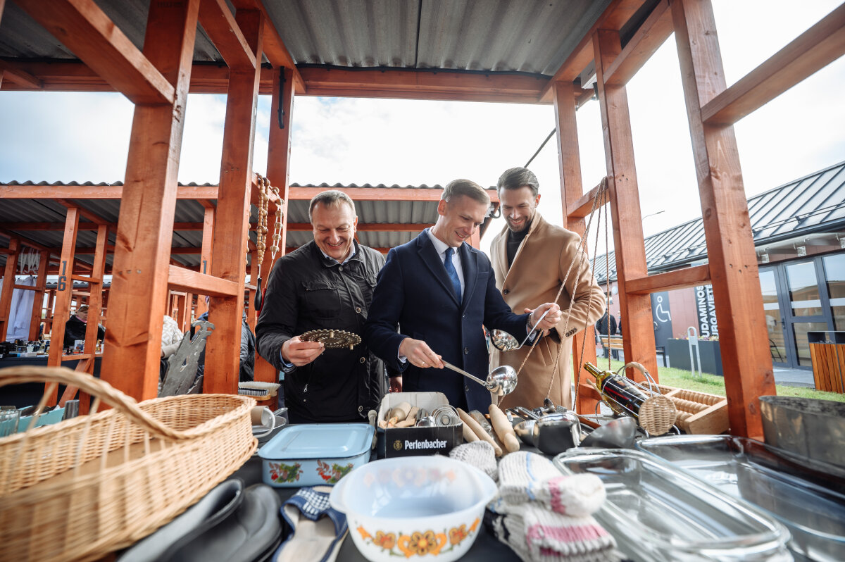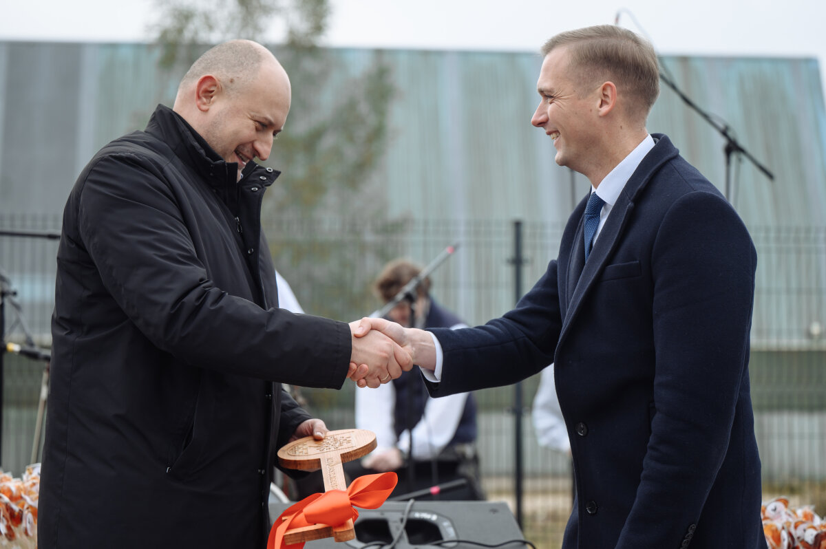 Meras R. Duchnevič turgavietės administratoriui Artur Danulevič įteikė simbolinį raktą, žymintį naują turgaus veiklos etapą.