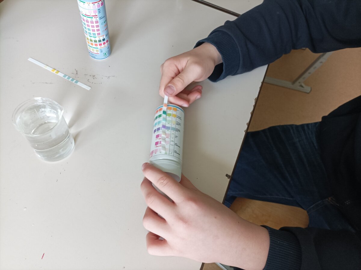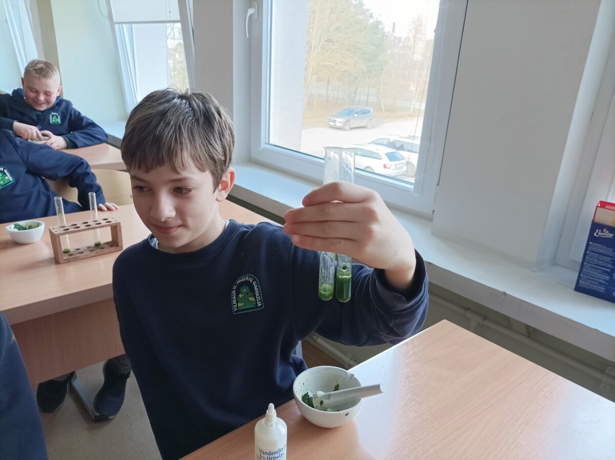 Chemijos mokytojos ekspertės Irenos Babinskos vadovaujami 5-8 klasių mokiniai žengė pirmuosius žingsnius į laboratorinius tyrimus. Jie susipažino su saugaus darbo laboratorijoje taisyklėmis, mokėsi matuoti ir sverti medžiagas, atliko vandens cheminės sudėties tyrimą bei ieškojo fermentų augaluose. Per šiuos užsiėmimus mokiniai lavino tyrinėjimo įgūdžius ir mokėsi taikyti mokslines žinias praktikoje.