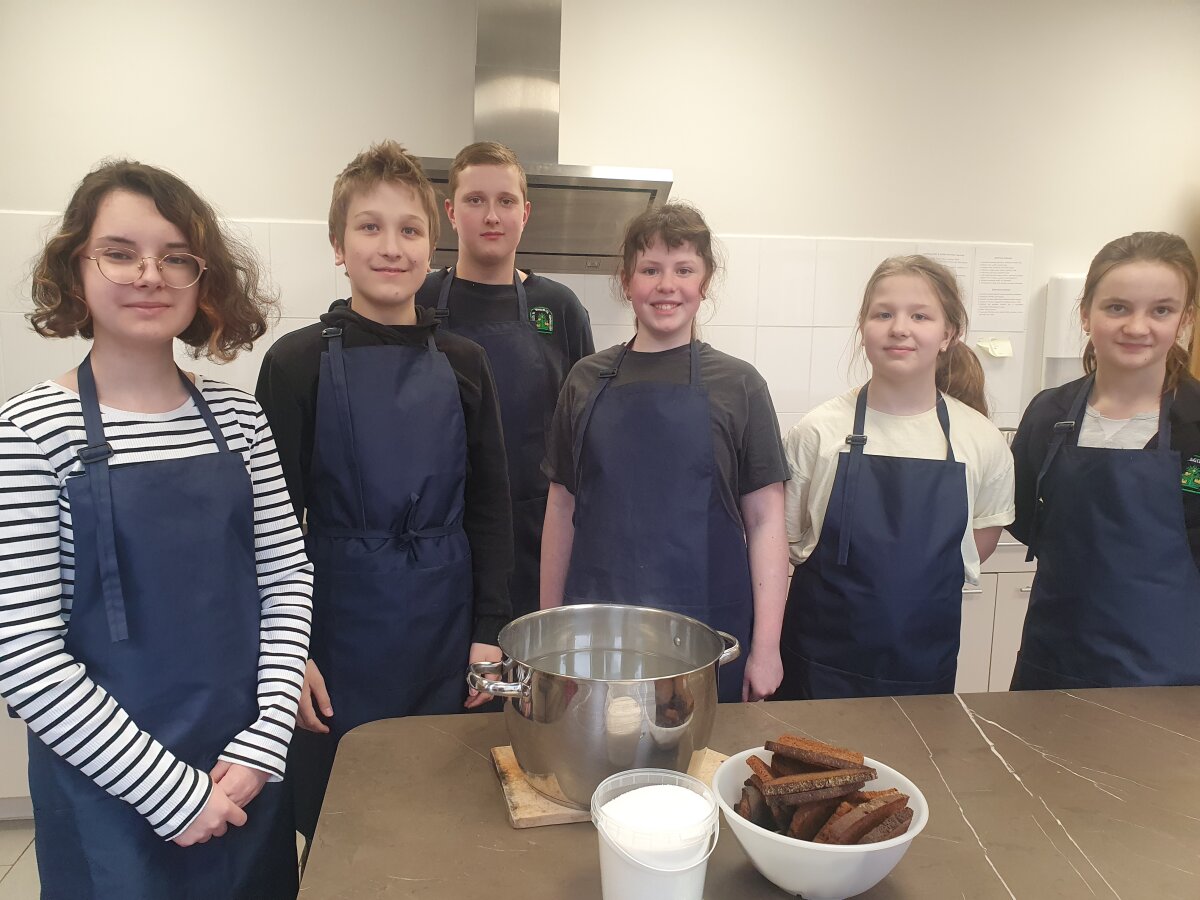 Biologijos ir technologijų vyr. mokytoja Jolanta Šibirkštė su mokiniais leidosi į skonių ir mikroorganizmų pasaulį. Tyrinėdami, kaip mikroorganizmai veikia maisto produktus, mokiniai raugino daržoves, stebėjo jų skonio ir konsistencijos pokyčius, aiškinosi fermentacijos procesus gaminant girą. Mokiniai taip pat kūrė sveikus užkandžius, gamino natūralius guminukus be jokių kenksmingų priedų – tai buvo ne tik įdomu, bet ir labai skanu!