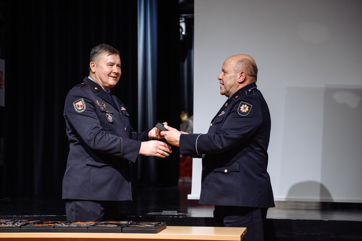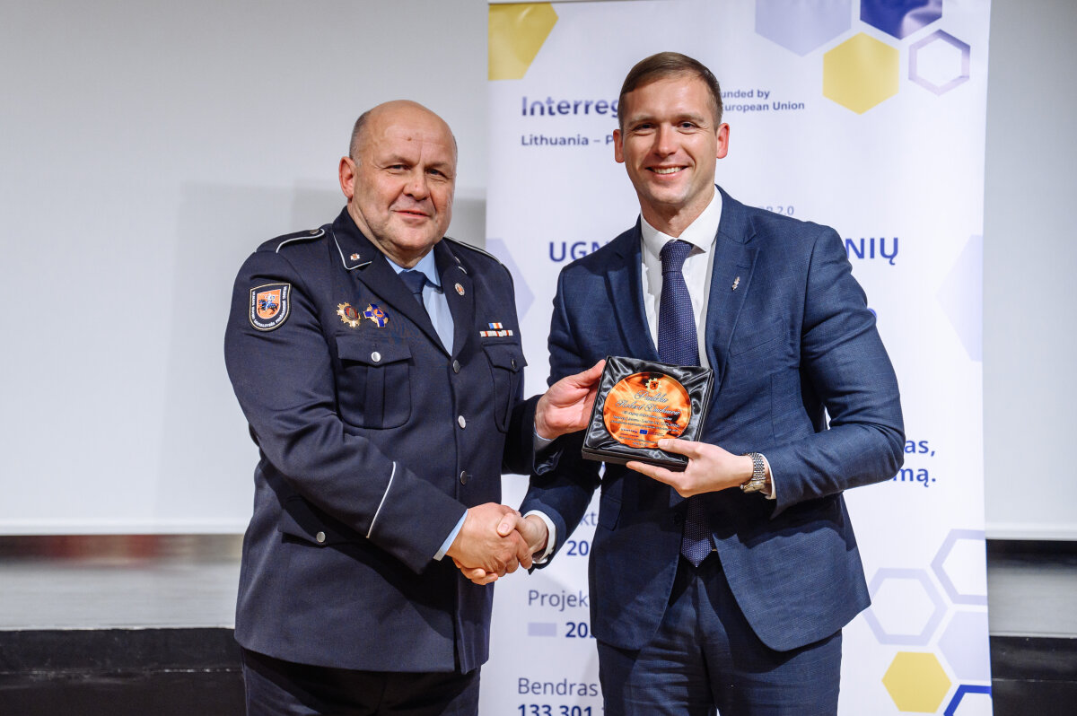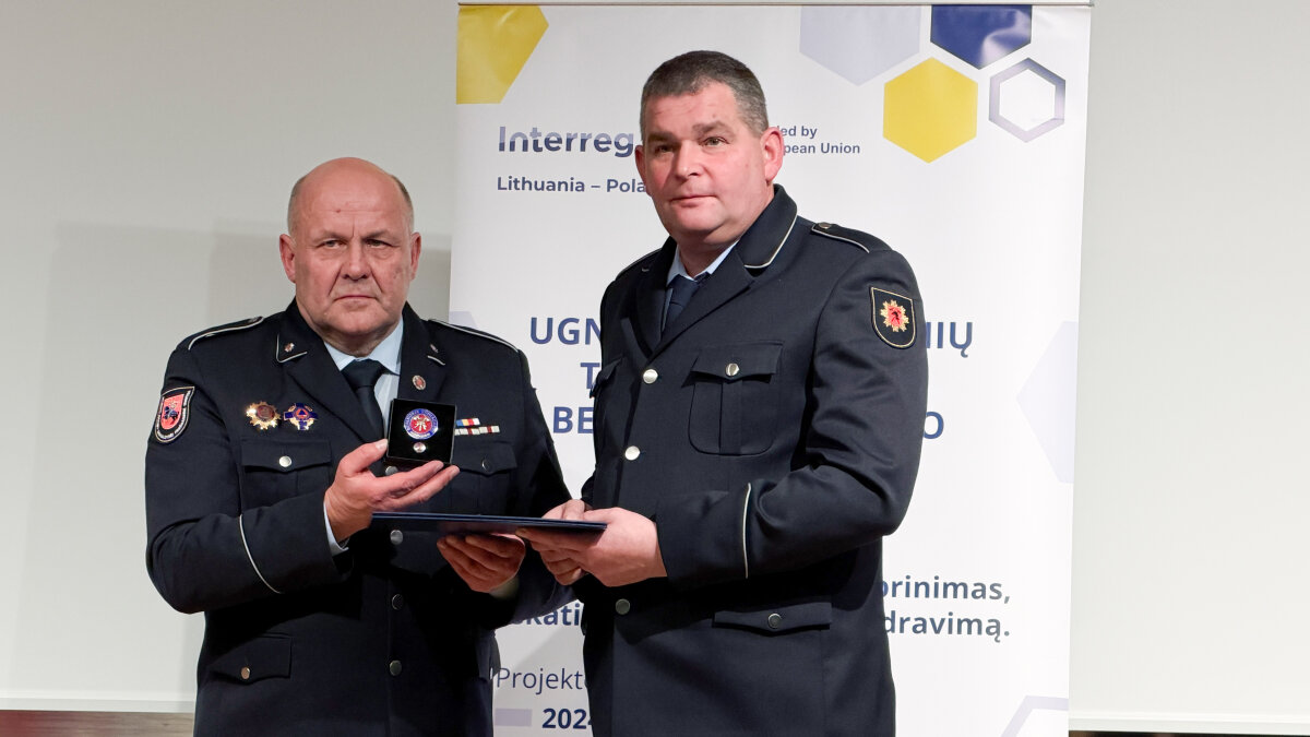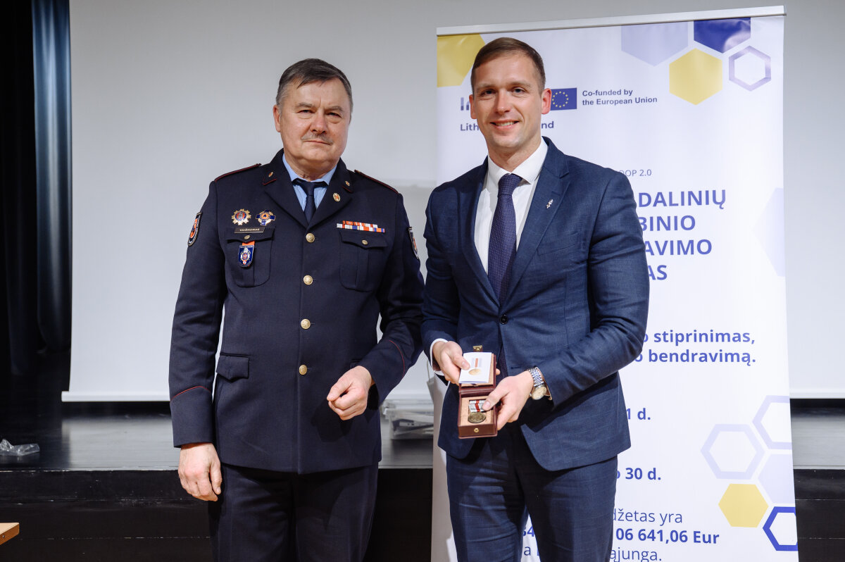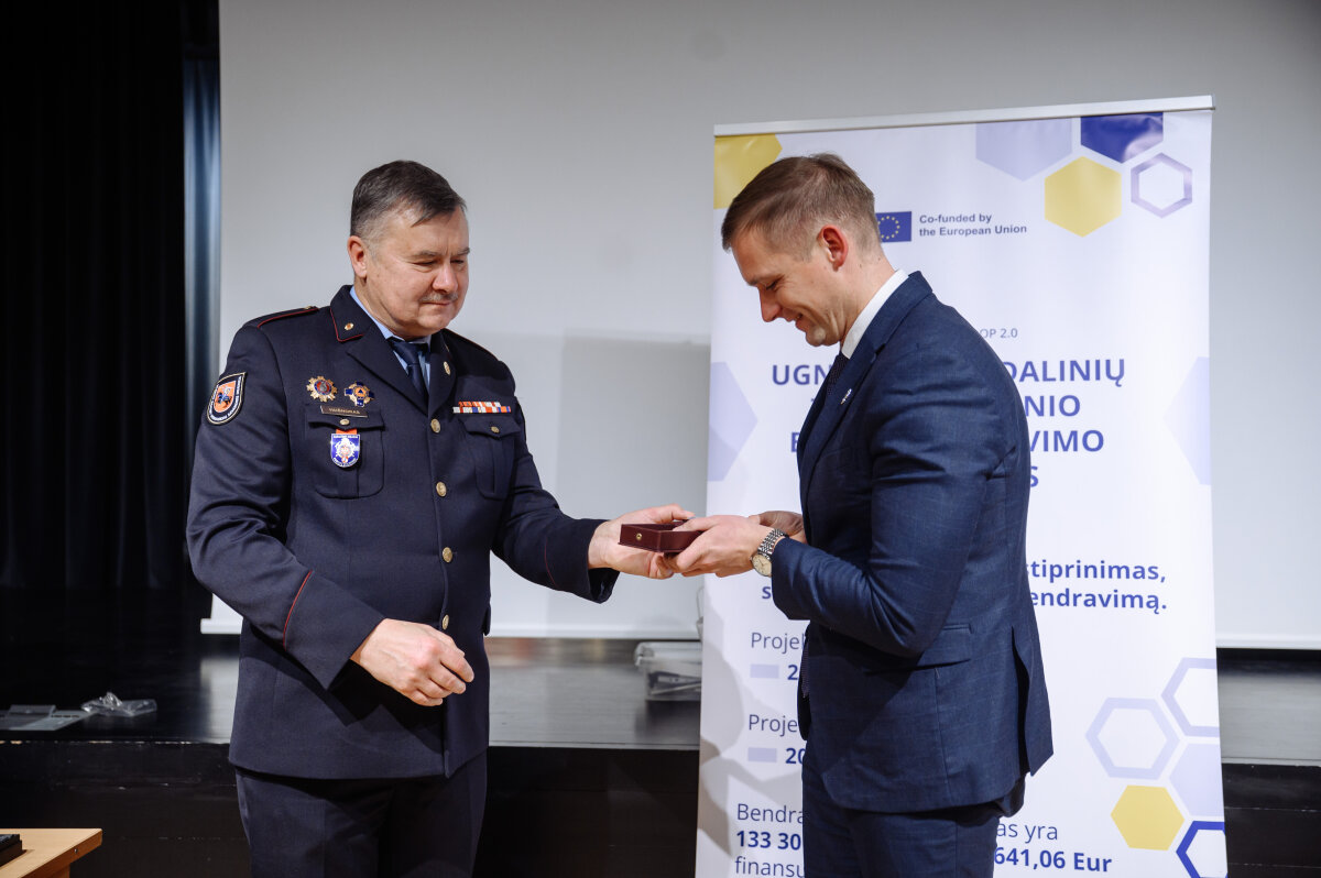 Projekto dalyviams buvo įteiktos padėkos ir medaliai už nuopelnus ugniagesybai.