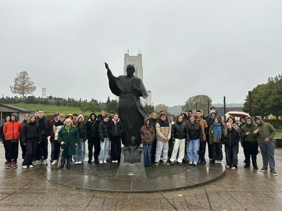 Toliau ekskursijos maršrutas vedė į Šiluvą – vieną svarbiausių piligrimystės vietų Lietuvoje. Čia mokiniai turėjo galimybę apsilankyti Švč. Mergelės Marijos Apsireiškimo koplyčioje ir aikštėje, išgirsti įdomių pasakojimų apie Šiluvos stebuklus ir Marijos apsireiškimus. Tvyrojo dvasinga, rami atmosfera, kviečianti susikaupimui ir apmąstymams.