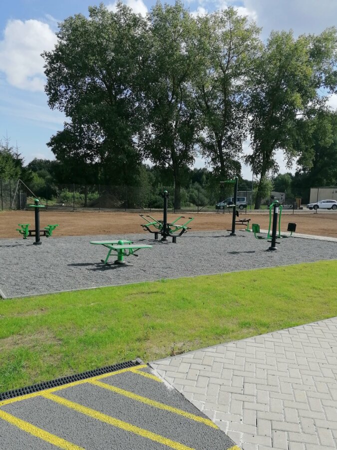 Šiais metais miestelio gyventojai jau gali džiaugtis ir moderniu sporto aikštynu. Čia įrengta futbolo aikštė, krepšinio-tinklinio aikštelė, bėgimo takai, gimnastikos ir lauko treniruokliai, pėsčiųjų takai. Aikštė yra aptverta, įrengtos mažosios architektūros elementai.