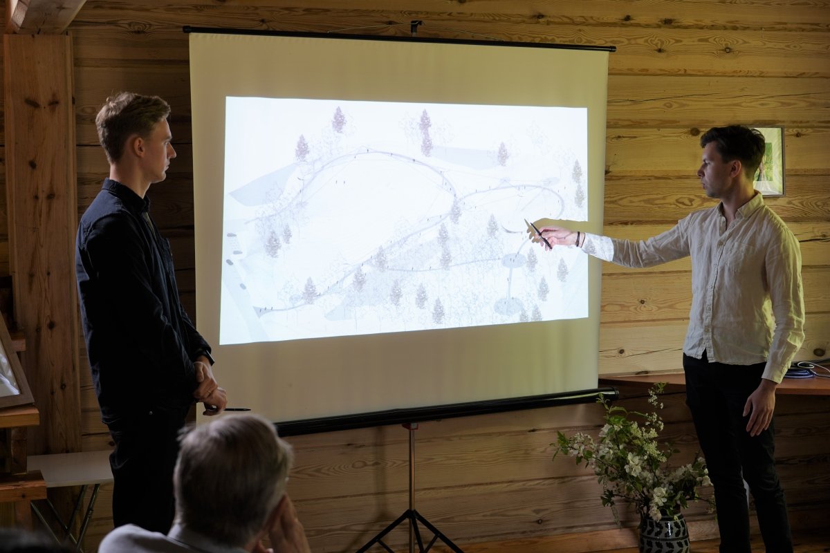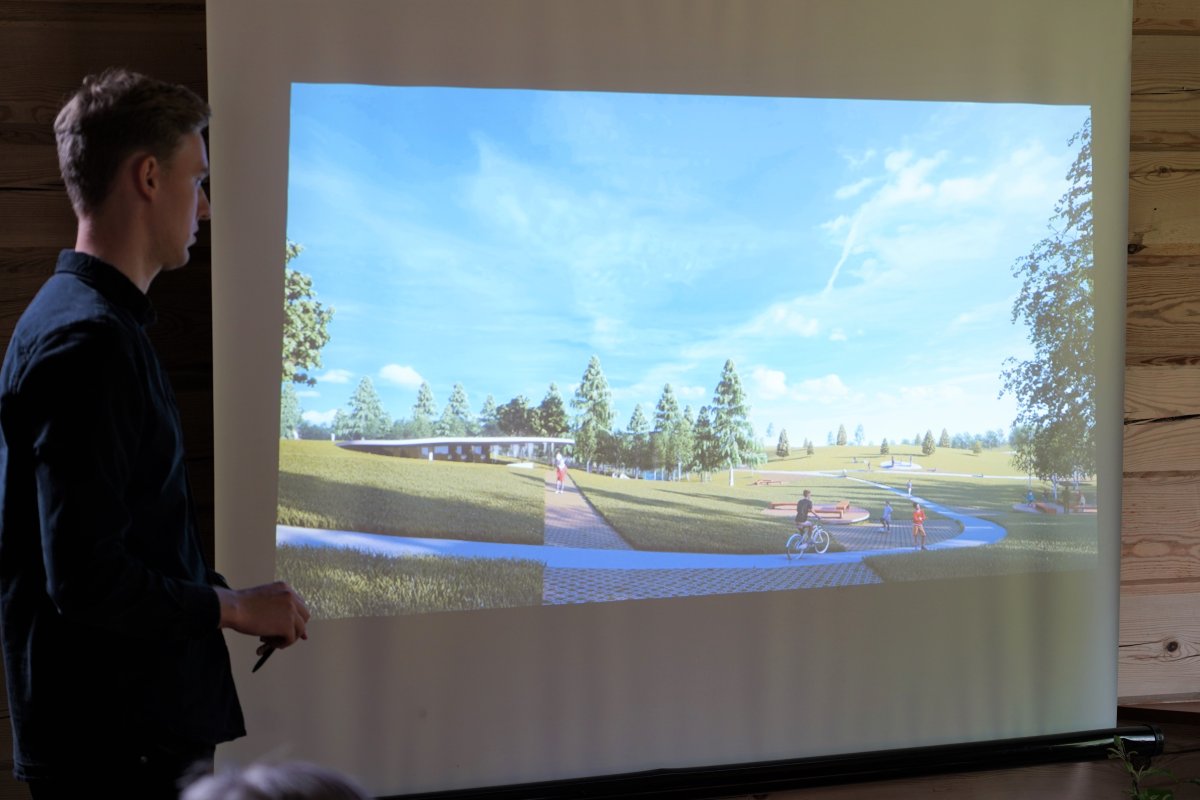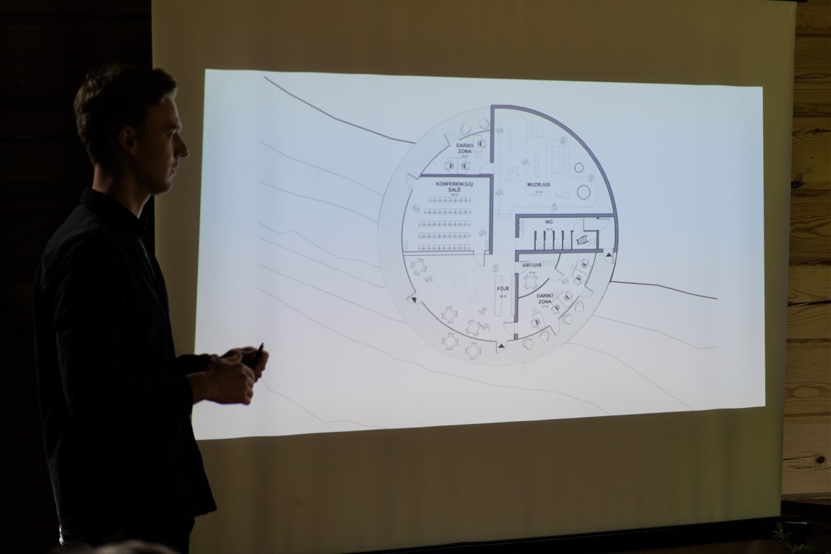 Šiandien susitikime dalyvavę „Architektūros linijos“ atstovai papasakojo apie jų siūlomą koncepciją. Visą teritoriją siūloma paskirstyti į dvi atskiras zonas: viena zona būtų skirta reprezentuoti Struvės geodezinį lanką, kita zona – reprezentuoti Europos geografinį centrą.