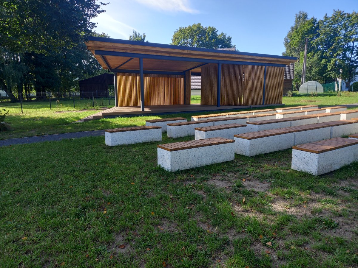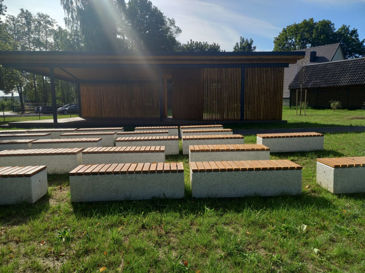 Įgyvendinant projekto veiklas Rukainių kaime esančiame 123 arų ploto sklype įrengta viešoji erdvė poilsiui ir sportui. Teritorijoje pastatyta dengta lauko scena su suoliukais žiūrovams, kur gyventojai turės tinkamas sąlygas organizuoti ir dalyvauti lauko renginiuose. Nutiesti pėsčiųjų takai, palei kuriuos sustatyti parko suoliukai ir šiukšliadėžės, įmontuoti dviračių stovai bei teritorijos apšvietimas.