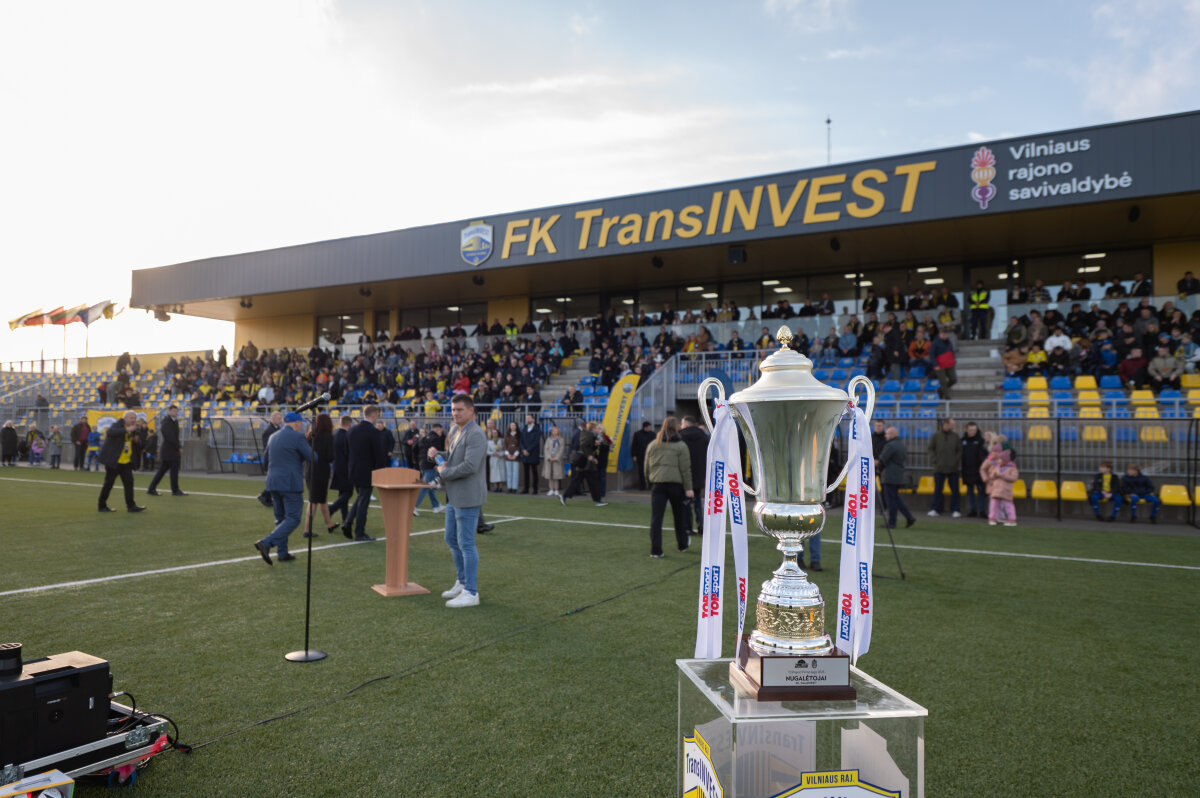 FK „TransINVEST“ prezidentas Vidmantas Pelėda pasidžiaugė šio projekto įgyvendinimu, papasakojo stadiono atsiradimo istoriją ir nuoširdžiai padėkojo visiems, prisidėjusiems prie klubo ir infrastruktūros augimo – nuo pirmųjų trenerių iki statybos rangovų bei visos bendruomenės.