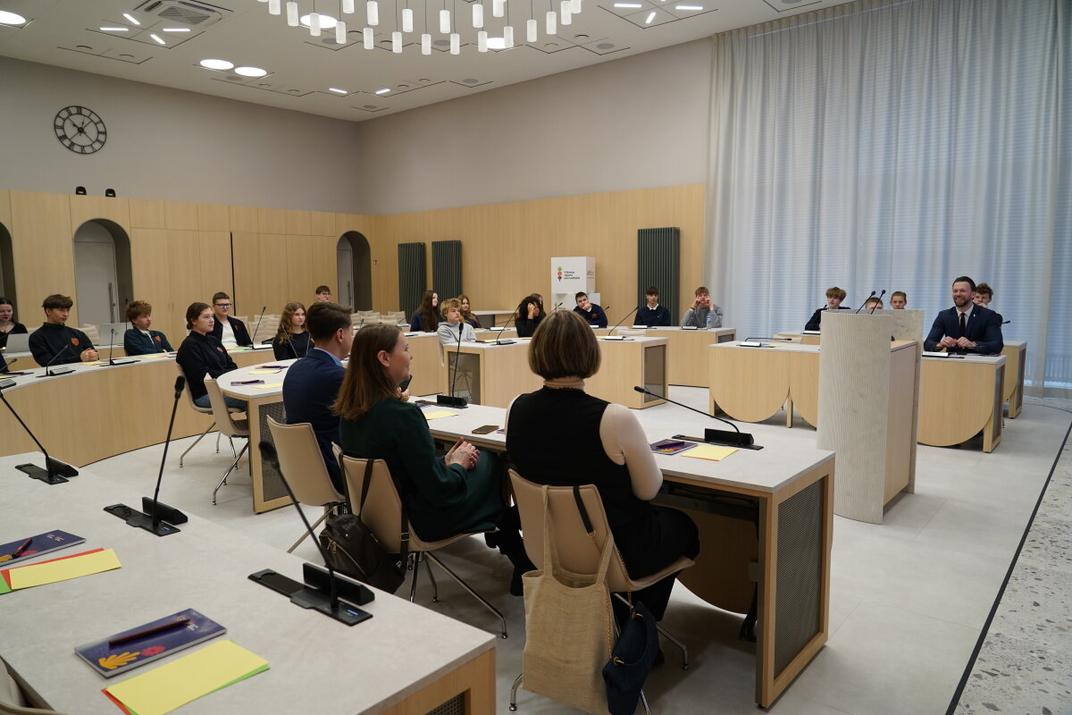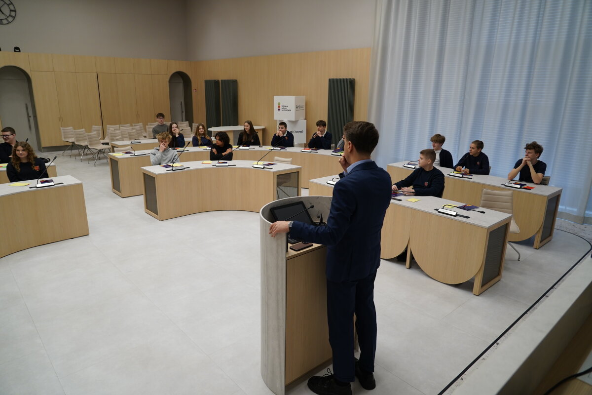 „Džiaugiamės, kad šiandien esate čia, savivaldybėje, ir turite galimybę iš arčiau susipažinti su savivaldos institucijos darbu. Įprastai tarybos posėdžiuose vyrauja skirtingos nuomonės. Būtent per diskusijas, argumentuotą nuomonių išsakymą ir skirtingų požiūrių įvairovę gimsta geriausi sprendimai, kurie padeda mūsų bendruomenei augti ir klestėti. Šiandien turite progą pamatyti, kaip demokratija veikia praktiškai: kiekvienas balsas svarbus, kiekviena idėja gali prisidėti prie bendro sprendimo. Tai – mūsų kasdienė veikla ir atsakomybė prieš gyventojus“, – sakė administracijos direktorius Vytautas Vansavičius.