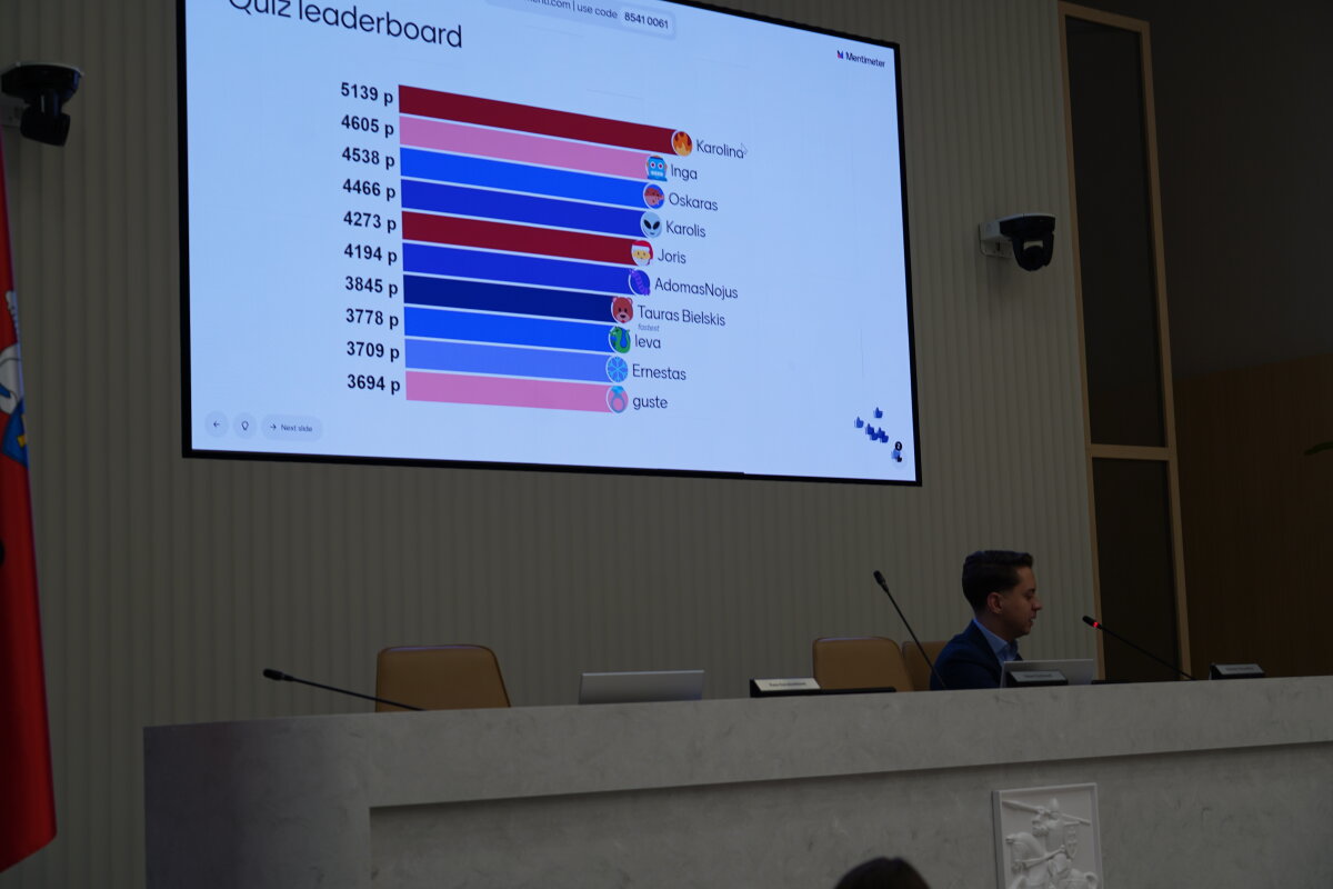 Centro dešinės koalicijos tarybos narys Daniel Ilkevič paruošė viktoriną, kurios metu mokiniai galėjo patikrinti savo žinias apie savivaldą. D. Ilkevič, vienas jauniausių Vilniaus rajono savivaldybės tarybos narių, po viktorinos moderavo tarybos posėdžio simuliaciją. Tokiu būdu jaunimas iš praktinės pusės susipažino su sprendimų priėmimo procesu ir pamatė, kaip veikia demokratija savivaldybės lygmeniu.