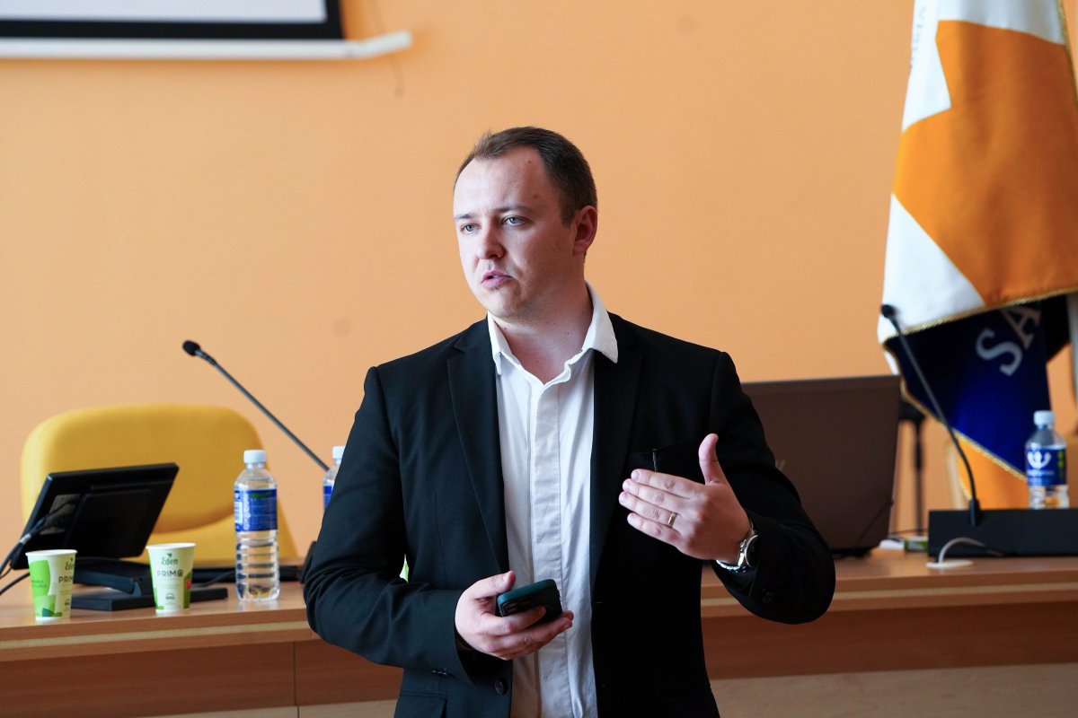 Vilniaus rajono tarybos narys ir Socialdemokratų frakcijos seniūnas Ruslanas Baranovas priartino mokiniams tarybos narių veiklą, jų pareigas ir iššūkius, su kuriais susiduriama teikiant sprendimų projektus bei kokį kelią reikia nukeliauti nuo idėjos iki jos priėmimo tarybos posėdyje.
