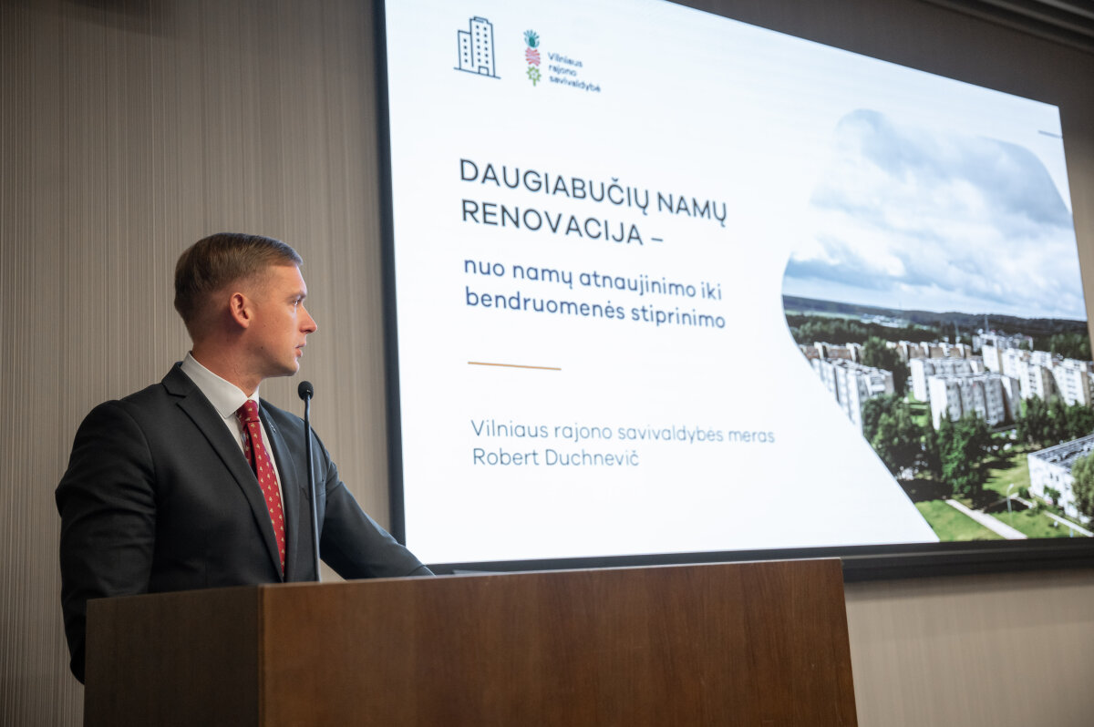 „Renovacija – tai ne tik energijos taupymas, bet ir vertinga investicija į saugesnį, patogesnį bei estetiškesnį būstą. Deja, ilgą laiką Vilniaus rajone renovacija vyko lėtai, tačiau šiandien nuosekliai vykdome modernizacijos ir remonto procesus, kasmet skirdami šimtus tūkstančių eurų iš savivaldybės biudžeto. Džiugu, kad pernai patvirtinta kvartalinės renovacijos programa jau kitais metais duos apčiuopiamų rezultatų. Aktyviai vykdome ir Mažosios renovacijos programą, leidžiančią gyventojams nemokamai atnaujinti šilumos punktus. Labai svarbus ir gyventojų įsitraukimas – tik bendradarbiaujant su bendruomenėmis galima pasiekti tikrą pokytį. Žalias, saugus ir šiltas rytojus yra mūsų rankose“, – konferencijoje akcentavo meras Robert Duchnevič.