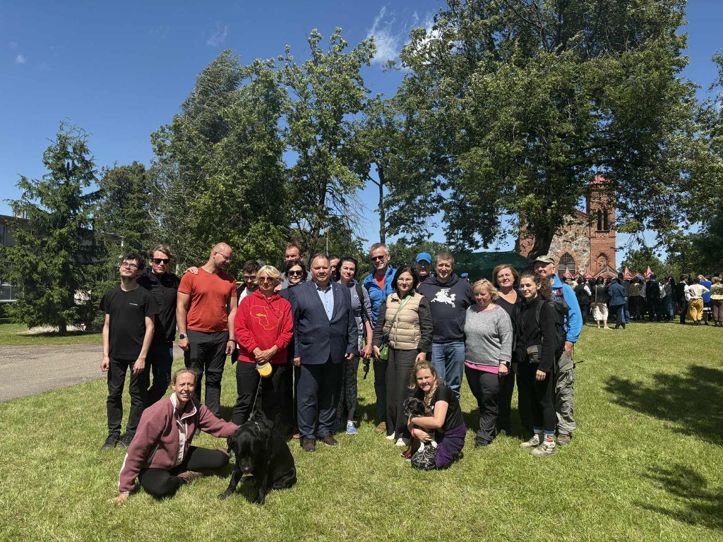 Žygio dalyviai nuoširdžiai dėkojo Dūkštų seniūnei Honoratai Masalskienei, kuri juos pasitiko su gaiviais gėrimais ir šypsena. Tačiau tikroji staigmena laukė netrukus – seniūnės sūnus pristatė naująjį Dūkštų herbą, su meile ir pasididžiavimu aiškindamas kiekvieną jo simbolį, atskleisdamas bendruomenės identiteto sluoksnius, slypinčius heraldikos detalėse. Dūkštų bažnyčios duris piligrimams atvėrė vietos kunigas, suteikęs progą akimirkai sustoti ir patirti dvasinį gilumą. Bažnyčios erdvė čia – ne tik maldos vieta, bet ir gyva atminties saugykla.