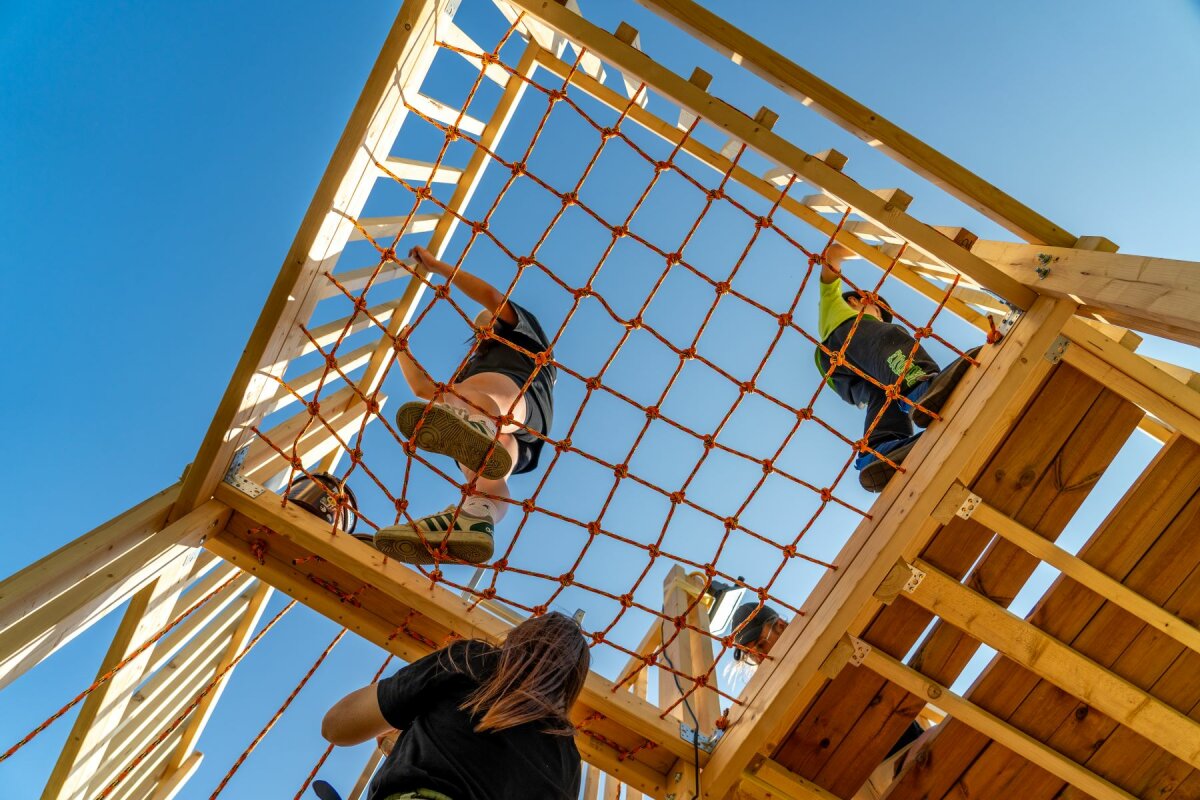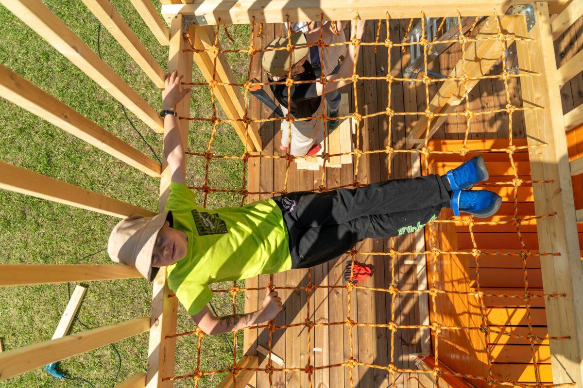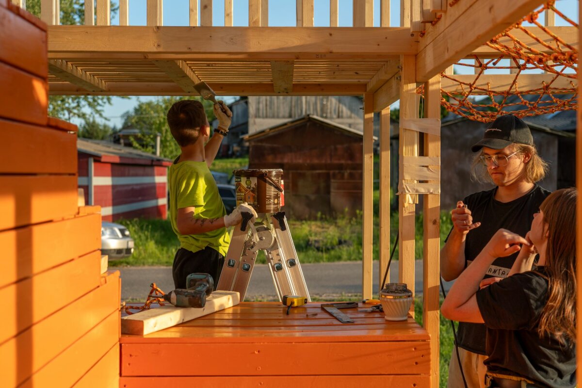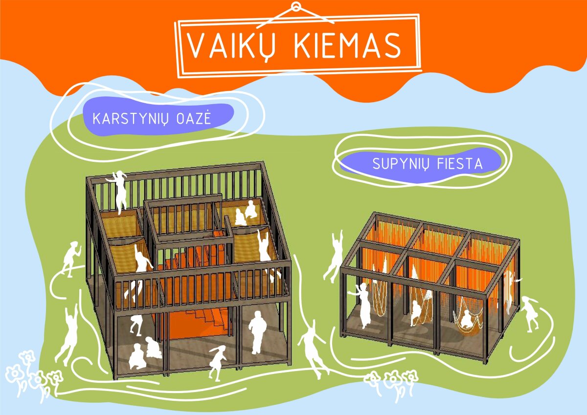 „Vaikų kiemas“ – tai Rudausių kaimo vaikų ir jaunimo poilsiui ir laisvalaikiui skirta erdvė, sukurta atsižvelgiant į jų pačių apibrėžtus poreikius ir lūkesčius. Projekto autores architektes Emiliją Deksnytę ir Solveigą Buoželytę įkvėpė konkurso užduotį suformavusių vaikų norai, mintys ir eskizai. Architektės pasiūlė sukurti visiems prieinamą gyvybingą erdvę, kurioje galėtų vykti skirtingos veiklos, o pati vieta taptų mėgstamiausiu vietos vaikų susitikimų, linksmybių ir pramogų kiemu. „Vaikų kiemas“ įgyvendintas kaip dviejų objektų kompozicija, papildanti 2023 m. konkurso vietoje sukurtą nedidelę poilsio terasą.