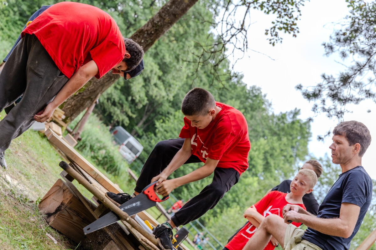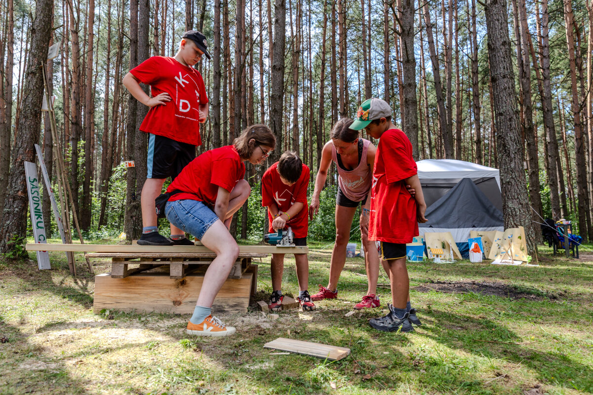 „Dirbtuvės buvo tikrai ypatingos. Lavoriškėse vyrauja lenkų kalba, tad komandai teko greitai prisitaikyti ir žongliruoti tarp lietuvių, lenkų, anglų kalbų, o kai pritrūkdavo žodžių – piešti ar net vaidinti. Geriausi vertėjai buvo patys vaikai, paskutinę dieną jie jau dirbo kaip profesionalai. Kalbos klaidos nevaržė – jos virto juoku, o juokas – naujomis meistravimo žiniomis. Vaikai taisė mūsų tartį, o mes mokėmės naujų žodžių. Taip gimė bendra kalba, kur „gulsčiukas“ ir „piła“ gulė į jungtinį žodyną“, - pasakojo savanorė Gabija.