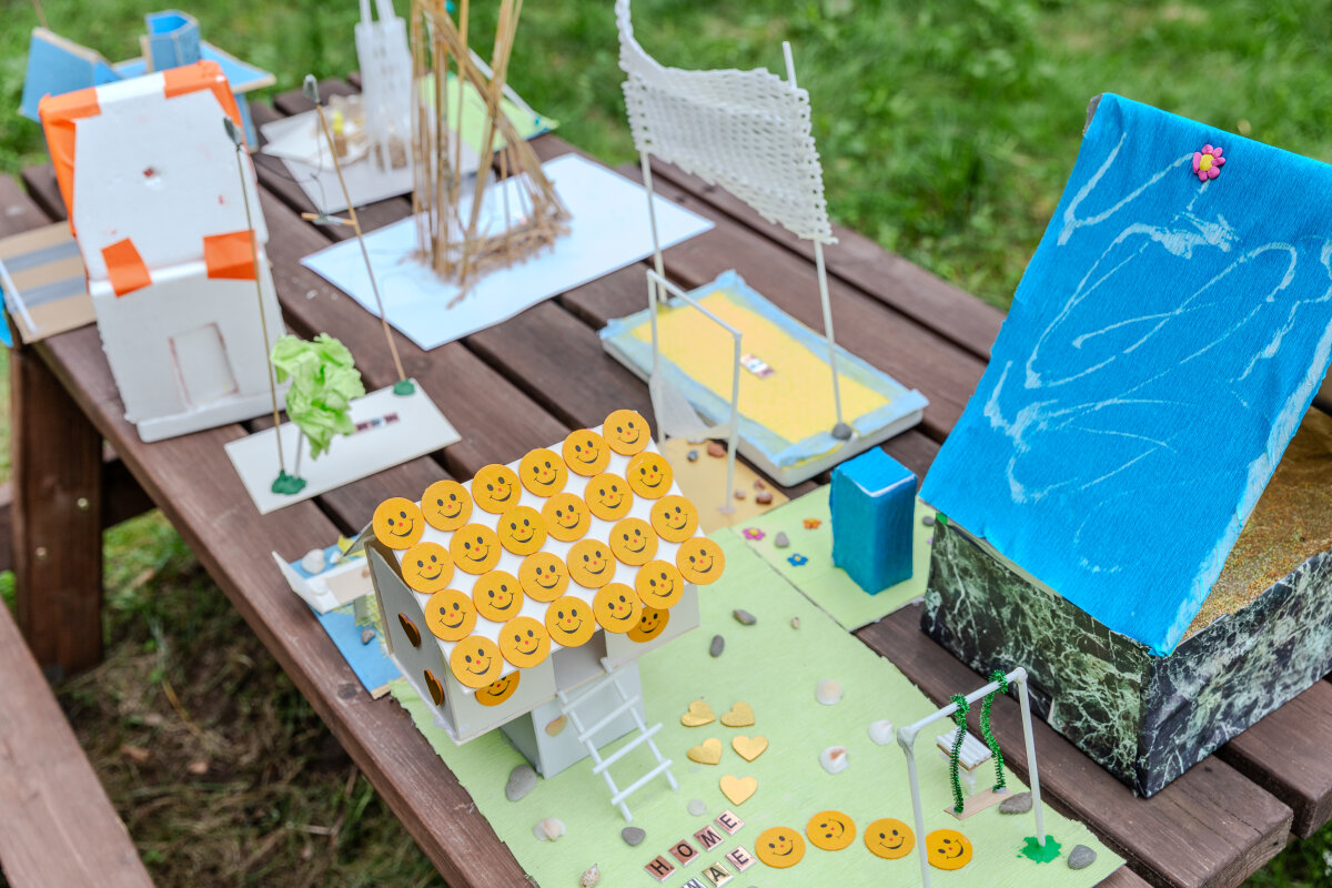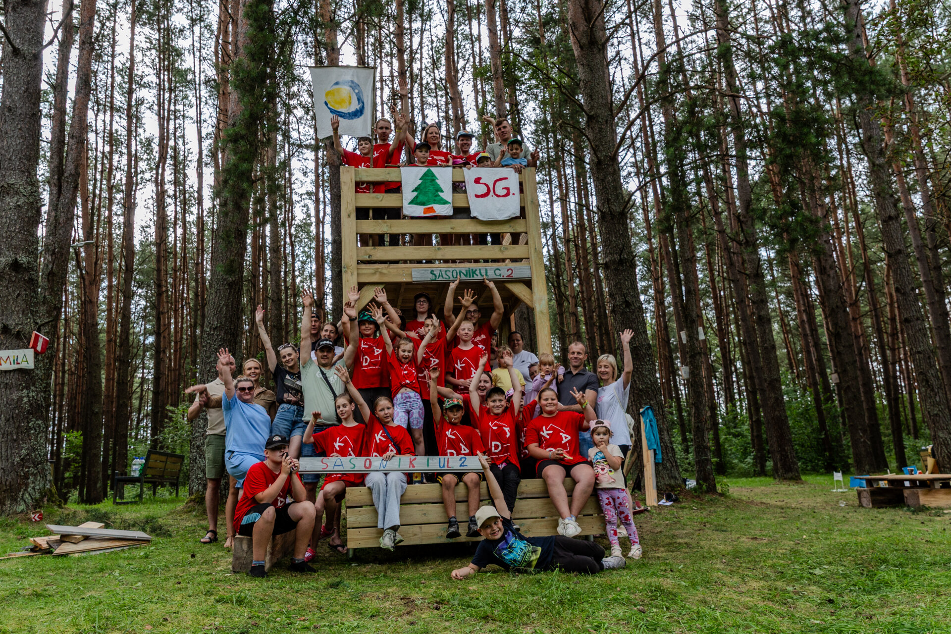 Paskutinę projekto dieną jungtinė vaikų, tėvų ir savanorių komanda įrengė suoliukus, nušlifavo visą konstrukciją, pagamino ir iškėlė spalvingas vėliavas bei sutvarkė aplinką.