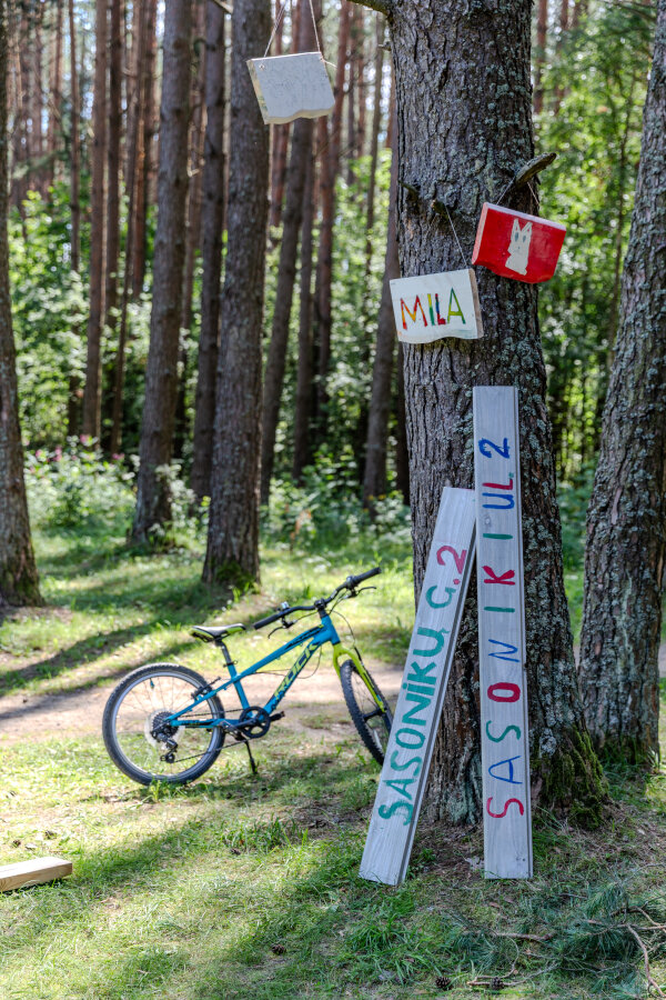 Miškelis, kuriame vyko dirbtuvės, vietinių vadinamas „Sasonikais“. Šis žodis, kilęs iš lenkiško sosna (pušis), tapo naujos gatvės pavadinimu. Nameliui miške komanda suteikė numerį, o lenteles lietuvių ir lenkų kalbomis vaikai išpurškė patys. Taigi, projekto pavadinimas – „Sasonikų g. 2“.