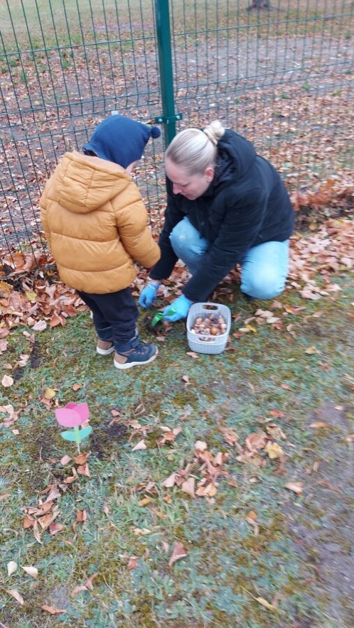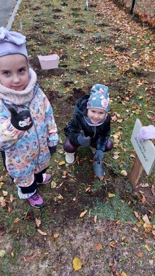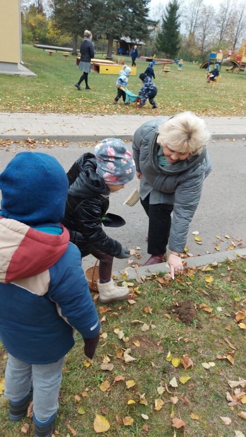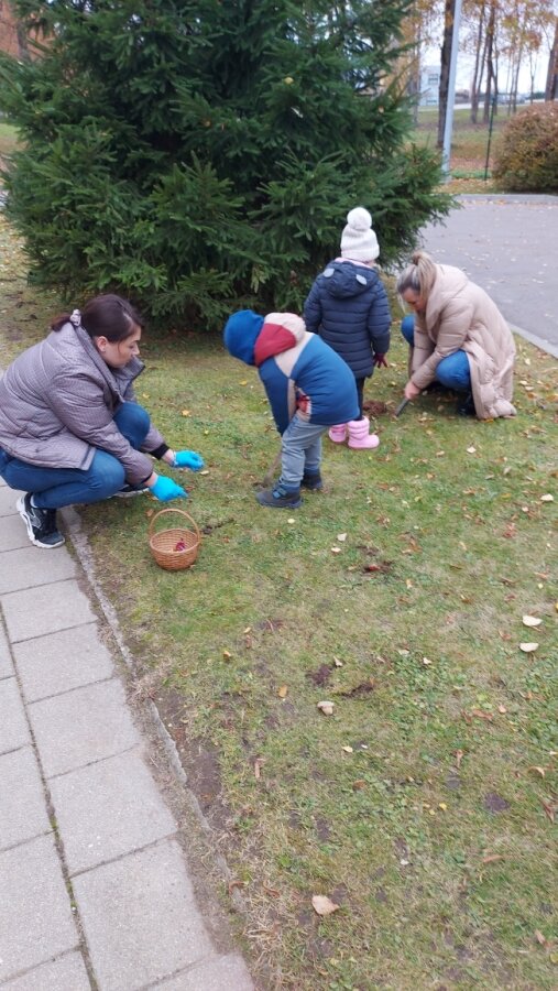 25 października, na przedszkolnym podwórku, dzieci wraz z rodzicami przystąpiły do pracy. Ktoś grabał liście, ktoś kopał dołki, ktoś dzielił cebulki. Każdy uczestnik akcji był zaangażowany i zainteresowany. Każdy przedszkolak posadził kilka cebulek wybranych kwiatów. Do akcji dołączyła też pani dyrektor Czesława Bałaisziene, która dzieliła się swym ogrodniczym doświadczeniem i podziękowała rodzicom za przybycie i pomoc w upiększaniu przedszkolnego podwórka.