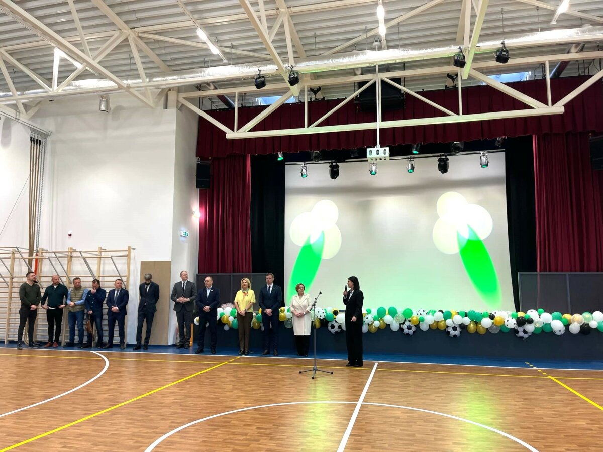 „Cieszymy się, że możemy otworzyć nową, nowoczesną salę sportową, która stanie się nie tylko miejscem uprawiania sportu, ale także spotkań społeczności. Dzisiaj chciałabym szczerze podziękować wszystkim, którzy przyczynili się do realizacji tego projektu. Bez wsparcia społeczności, samorządu i partnerów z Polski otwarcie tej sali sportowej nie byłoby możliwe. W przyszłym miesiącu zaprosimy wszystkich na uroczyste wydarzenie w tej nowej przestrzeni, gdzie podziękujemy tym, którzy się przyczynili i wspólnie będziemy świętować wykonaną pracę” – powiedziała W. Wojnicz, dyrektor gimnazjum.