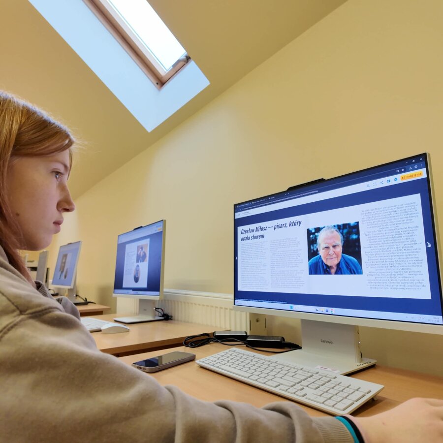 W ramach zajęć informatycznych uczniowie uczyli się obsługi aplikacji Book Creator, tworząc multimedialne e-booki poświęcone patronowi szkoły. Dzięki temu mogli połączyć literaturę z nowoczesnymi technologiami. Na lekcjach języka angielskiego poznawali twórczość Miłosza w przekładzie, słuchając jego wierszy w języku angielskim. Z kolei na lekcjach języka polskiego młodzież przypominała sobie biografię poety, czytała wylosowane wiersze oraz tworzyła ilustracje do wybranych cytatów, rozwijając wyobraźnię i wrażliwość artystyczną.