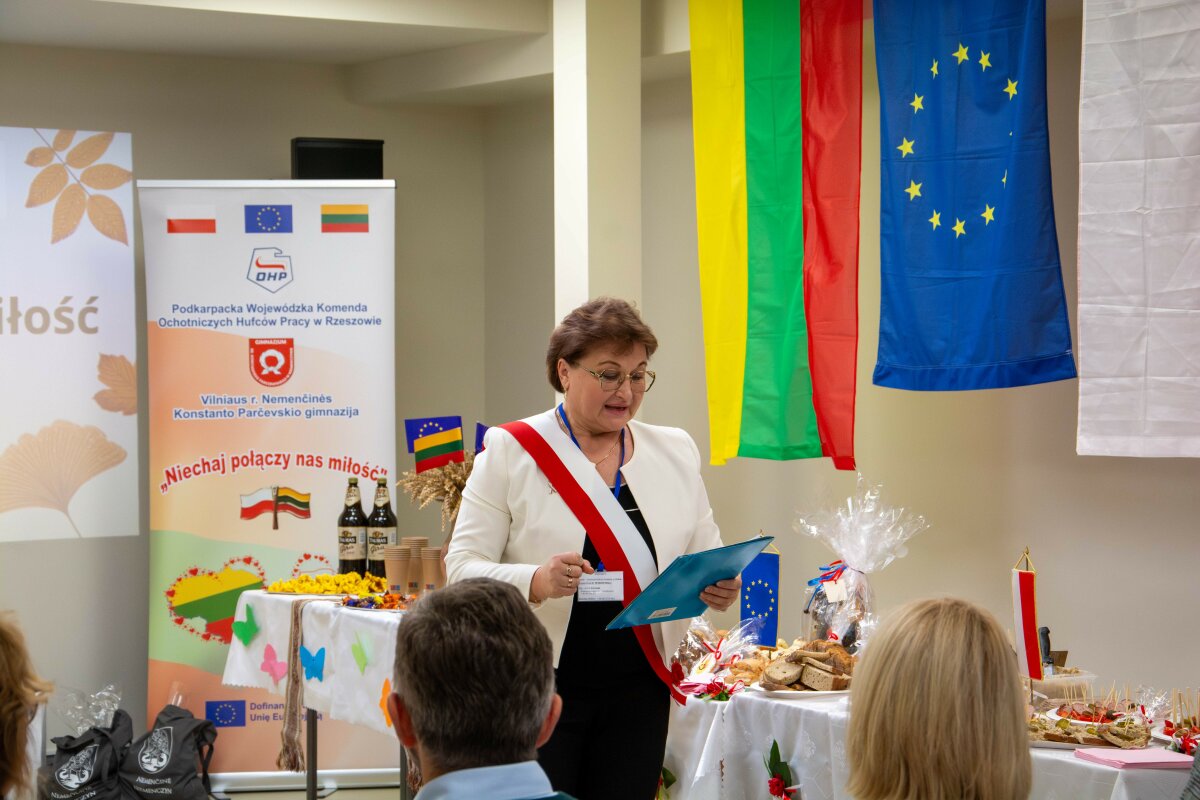 W dniach 5–9 października w gimnazjum im. K. Parczewskiego w Niemenczynie odbył się międzynarodowy projekt Erasmus+ „Niechaj połączy nas miłość”, w którym uczestniczyli uczniowie z Litwy oraz z Młodzieżowego Centrum Edukacji i Pracy OHP w Rzeszowie (Polska). Pięciodniowy program miał na celu wspieranie dialogu międzykulturowego, pielęgnowanie przyjaźni oraz rozwijanie umiejętności współpracy. Uczniowie wspólnie uczestniczyli w zajęciach twórczych, edukacyjnych, sportowych i poznawczych, które pozwoliły im lepiej się poznać oraz przybliżyły kultury obu krajów.