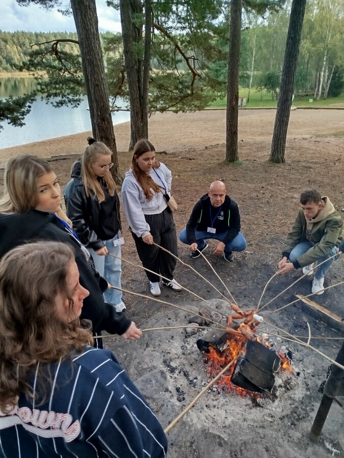 Po południu uczestnicy wybrali się nad jezioro, gdzie czekał ich nieformalny, ale niezwykle ciepły wieczór integracyjny – pieczenie kiełbasek, gry zespołowe i wspólne rozmowy. Wspólne chwile na łonie natury jeszcze bardziej umocniły więź między młodzieżą z obu krajów.