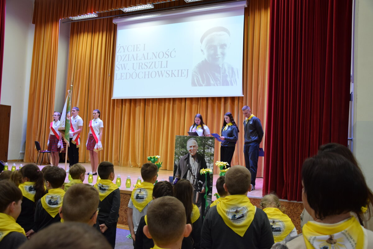 17 kwietnia był wyjątkowym i świątecznym dniem w Gimnazjum im. św. Urszuli Ledóchowskiej w Czarnym Borze. Tego dnia uczczono 160. rocznicę urodzin Patronki – św. Urszuli Ledóchowskiej. Cała społeczność szkolna zgromadziła się w auli, by wspólnie celebrować to ważne wydarzenie i uroczyście zainaugurować nowy projekt edukacyjny pod hasłem: „Miłość jako droga – 160. rocznica urodzin św. Urszuli Ledóchowskiej”.