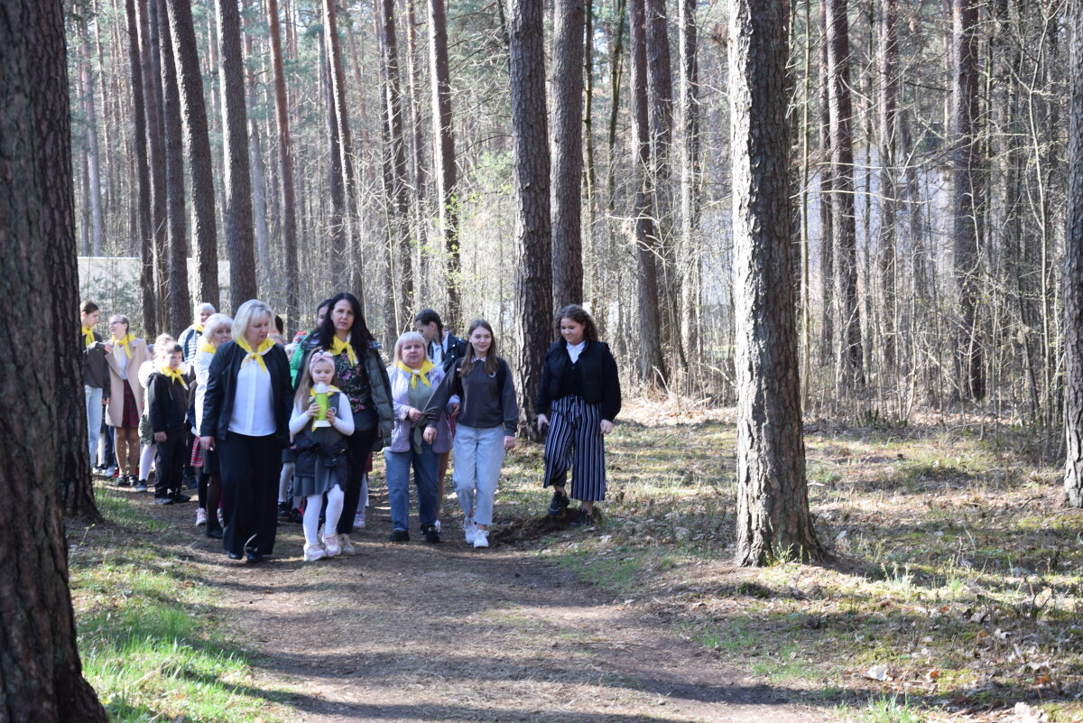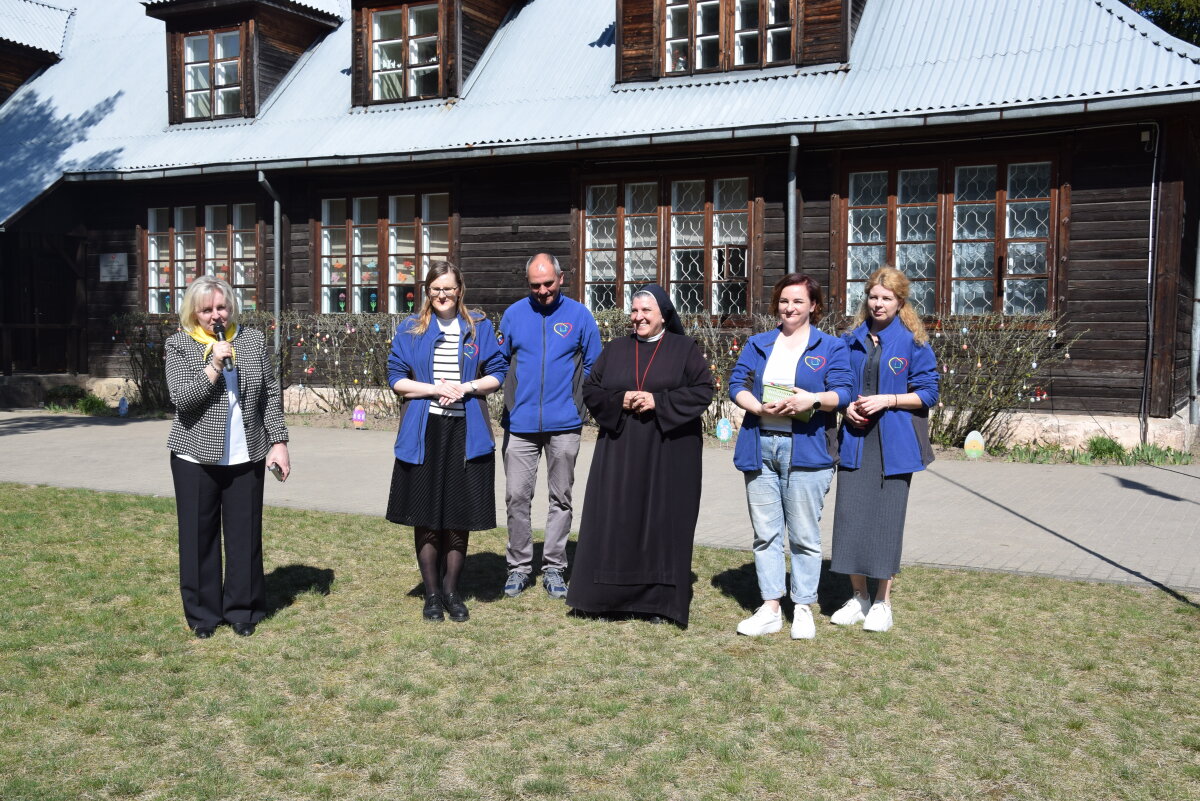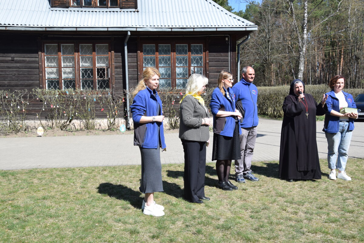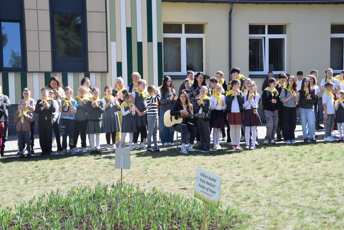 Po południu tego samego dnia nasze gimnazjum miało zaszczyt gościć szanowną s. Michaelę Rak – dyrektor hospicjum bł. ks. Michała Sopoćki w Wilnie – wraz z pracownikami placówki. Słoneczne popołudnie zgromadziło nas wokół żonkili, które wspólnie posadziliśmy we wrześniu ubiegłego roku. Utworzyły one kształt serca, tworząc symboliczne „Pola Nadziei”. S. Michaela, zwracając się do zebranych, podzieliła się refleksjami na temat znaczenia modlitwy, poświęcenia i nadziei w życiu osób cierpiących. Wyraziła również wdzięczność za dar serca dla tych, którzy okazują współczucie i pomoc w trudnych momentach życia.