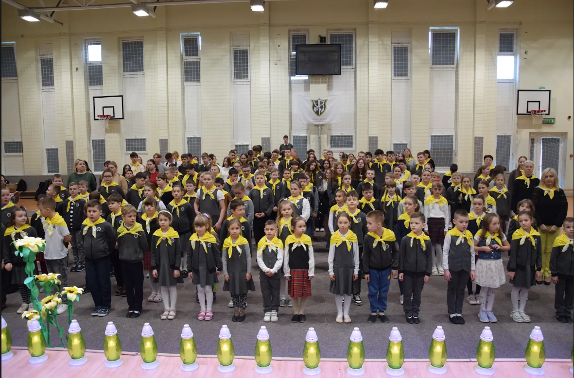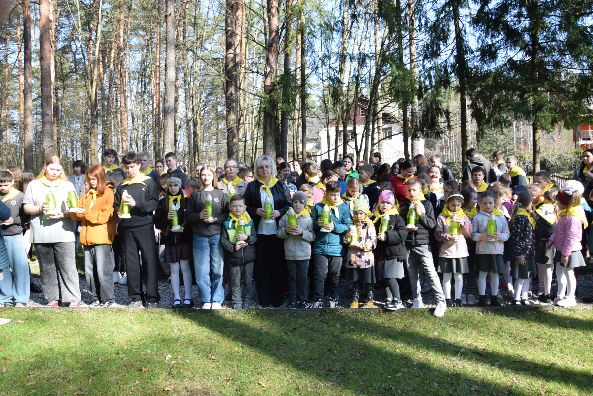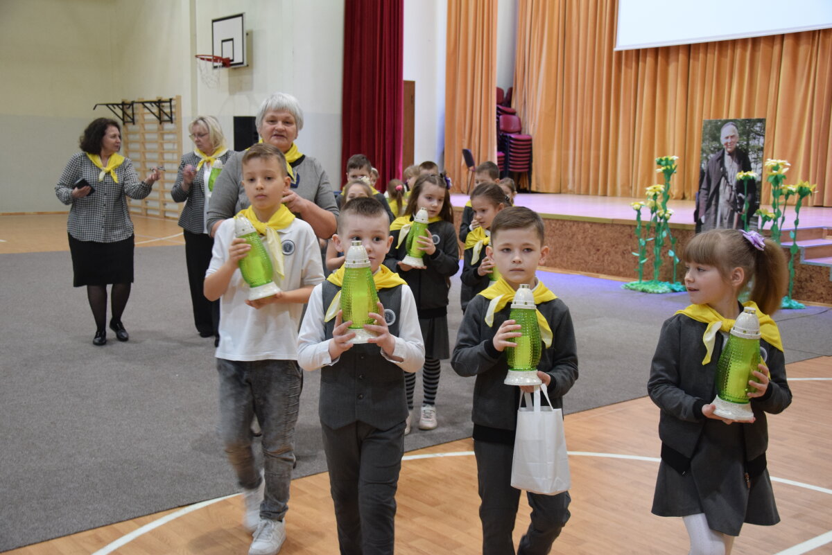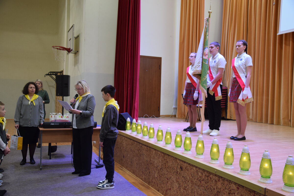 Po południu tego samego dnia nasze gimnazjum miało zaszczyt gościć szanowną s. Michaelę Rak – dyrektor hospicjum bł. ks. Michała Sopoćki w Wilnie – wraz z pracownikami placówki. Słoneczne popołudnie zgromadziło nas wokół żonkili, które wspólnie posadziliśmy we wrześniu ubiegłego roku. Utworzyły one kształt serca, tworząc symboliczne „Pola Nadziei”. S. Michaela, zwracając się do zebranych, podzieliła się refleksjami na temat znaczenia modlitwy, poświęcenia i nadziei w życiu osób cierpiących. Wyraziła również wdzięczność za dar serca dla tych, którzy okazują współczucie i pomoc w trudnych momentach życia.