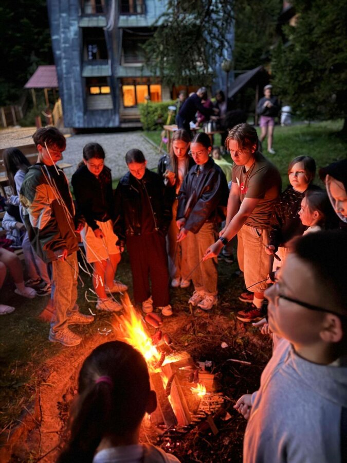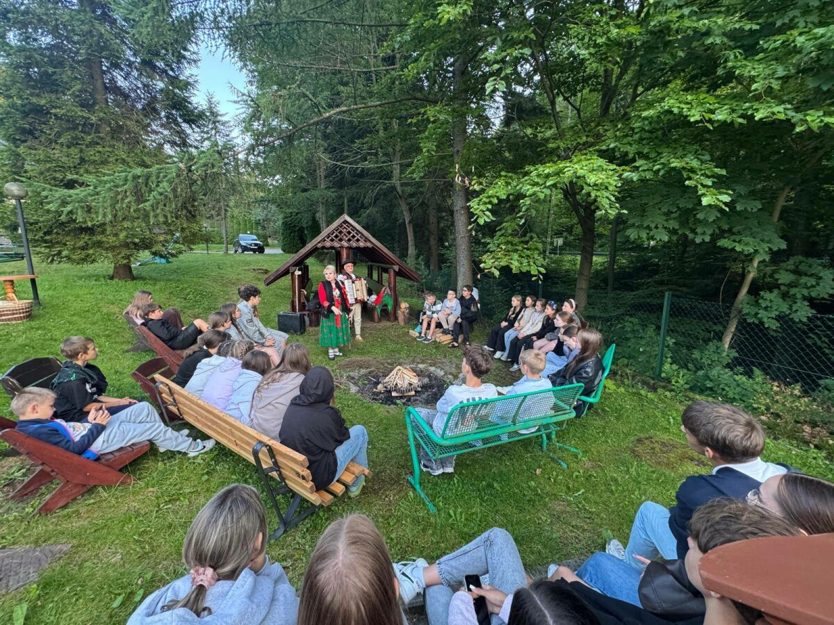 Nie zabrakło również atrakcji na miejscu. Dzieci i młodzież uczestniczyły w grach i zabawach integracyjnych oraz próbowały swoich sił w laserowych rozgrywkach. Wieczór filmowy z projekcją „Jak wytresować smoka” dostarczył wielu emocji – wzruszeni byli i mali, i duzi. Szczególnym przeżyciem kolonijnego programu było spotkanie przy ognisku z góralem i góralką, którzy w barwny sposób przybliżyli tradycje regionu, a następnie poprowadzili wspólne śpiewy i tańce.