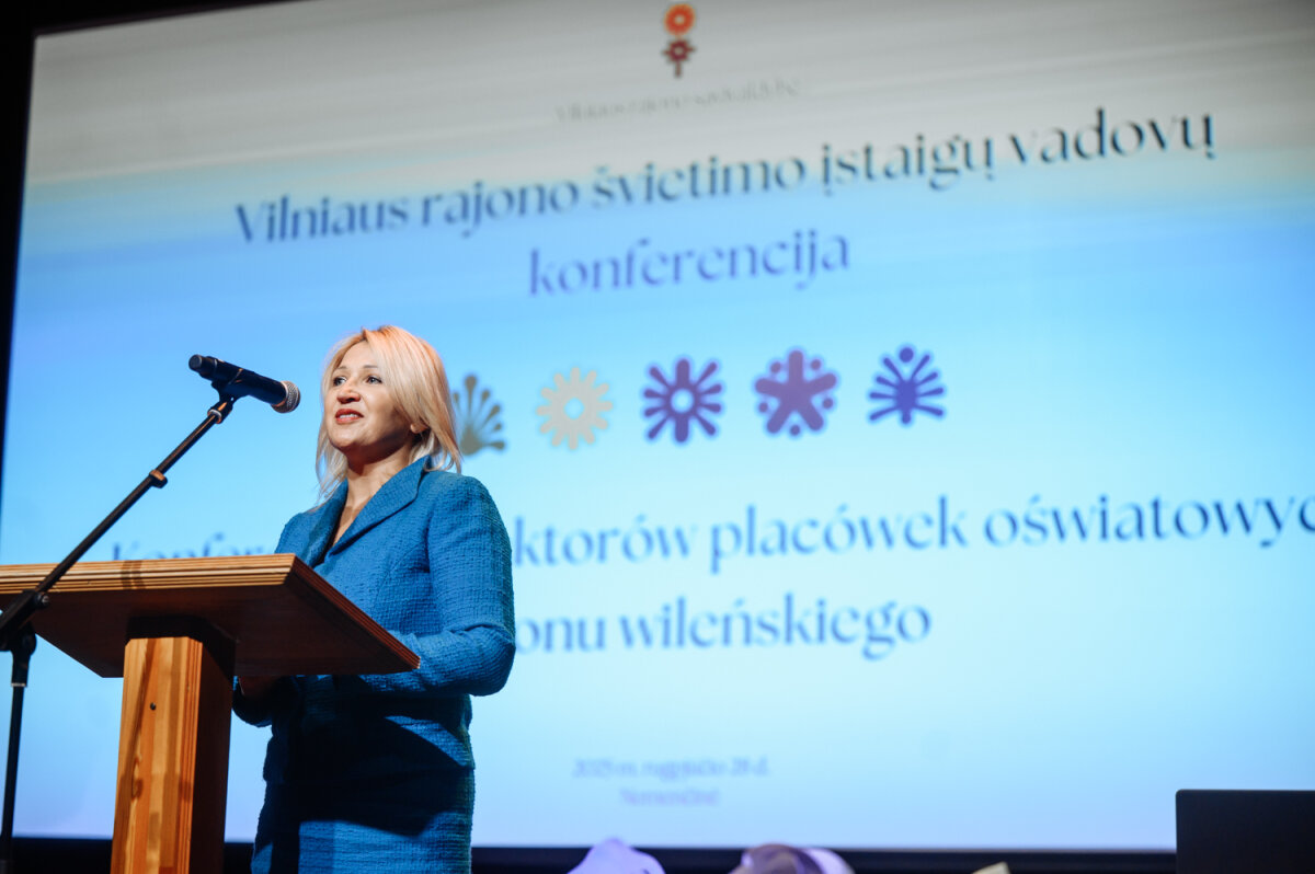 Coroczna konferencja dyrektorów placówek oświatowych rejonu wileńskiego, organizowana przed rozpoczęciem nowego roku szkolnego, staje się ważną platformą dyskusji, upowszechniania dobrych praktyk i wyznaczania wspólnych celów. Podczas niej określane są priorytety na nadchodzący rok szkolny, dzieli się rozwiązaniami, które pomagają sprostać wyzwaniom systemu oświaty i umacniać współpracę.