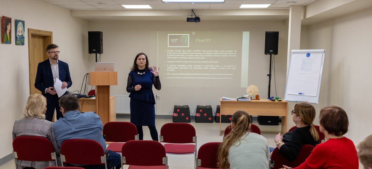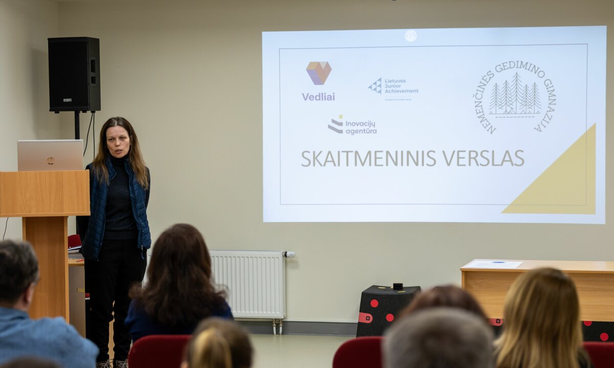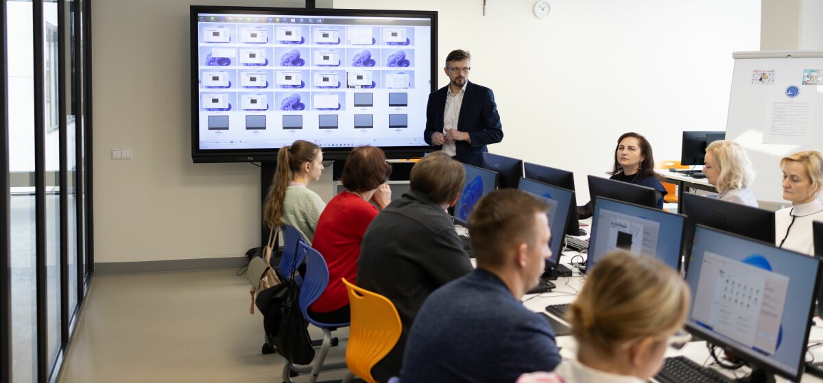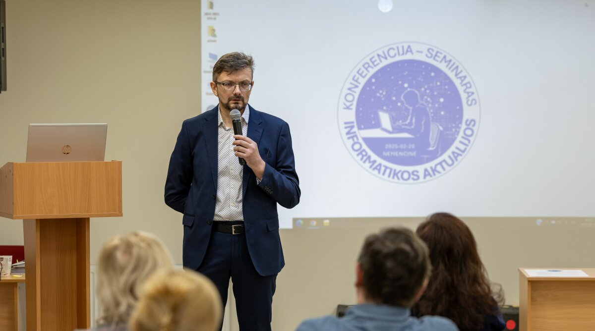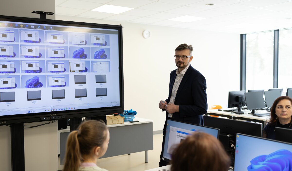 Edyta Pakietur mówiła o pracy według zaktualizowanej podstawy programowej informatyki w klasie 9, prezentując prace uczniów oraz niedawno realizowany projekt „Nauka przez zabawę: doskonalenie umiejętności medialnych młodzieży krajów bałtyckich”. W ramach tej inicjatywy uczniowie uczyli się rozpoznawania i demaskowania dezinformacji, co jest szczególnie ważne w dzisiejszych czasach, gdy przestępstwa w Internecie stają się coraz powszechniejsze. Następnie Edyta Pakietur krótko przedstawiła program nauczania informatyki nowej generacji „Vedliai”, który daje uczniom klas 9-10 lepszą możliwość zapoznania się z możliwościami nowoczesnych technologii.