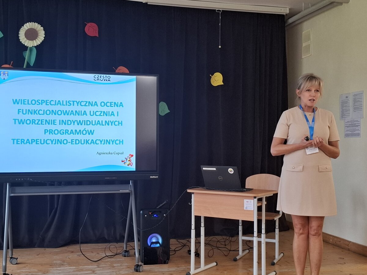 Temat wielospecjalistycznej oceny funkcjonowania ucznia i tworzenie indywidualnych programów edukacyjno-terapeutycznych przybliżyli Agnieszka Cupiał – dyrektor Szkół Specjalnych nr 28 w Częstochowie oraz Tomasz Szczygłowski, dyrektor liceum w Częstochowie. Po przerwie uczestniczący w konferencji mieli warsztaty i pracę w grupach.