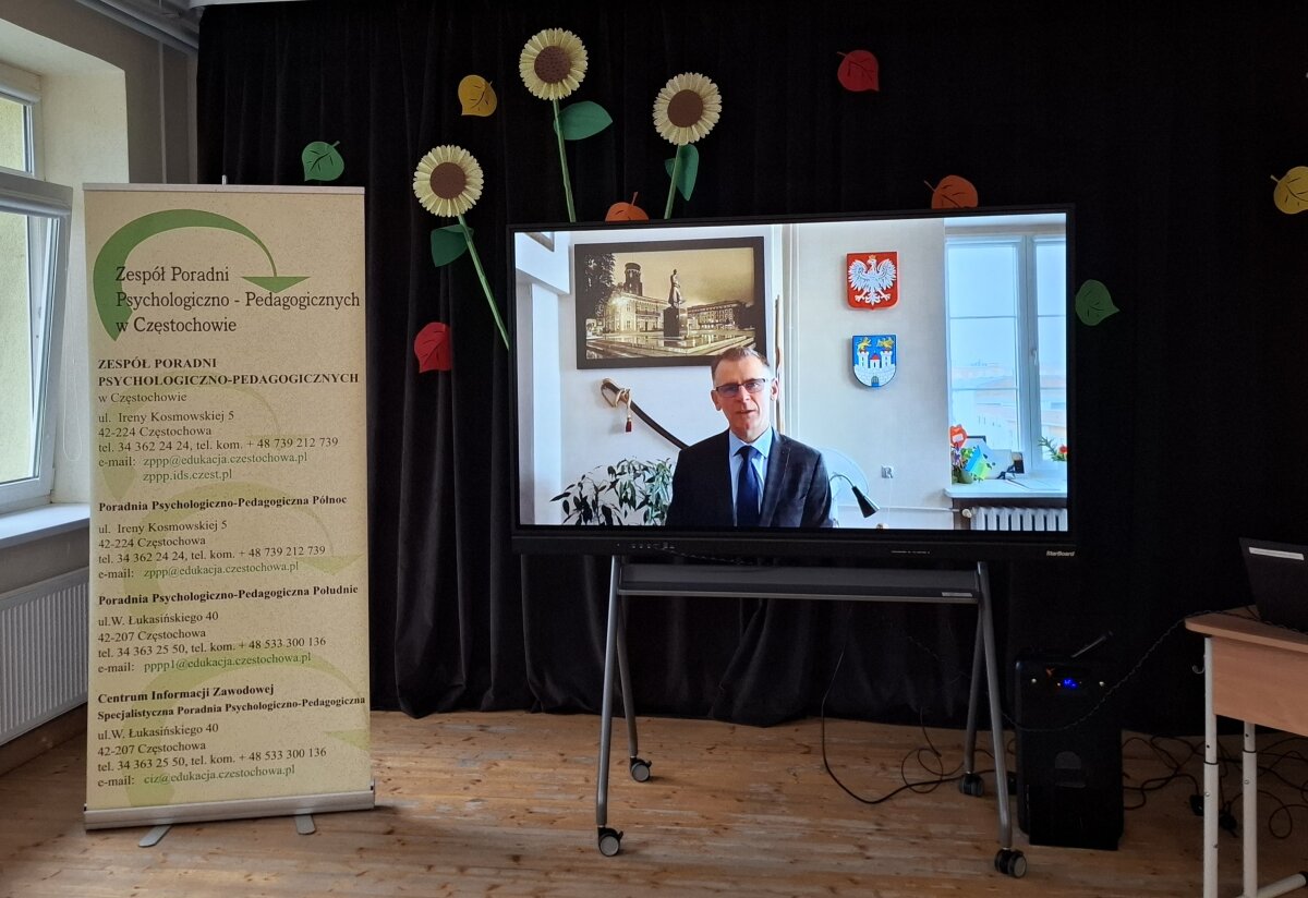 Wirtualne życzenia owocnych obrad złożył również Rafał Piotrowski – Naczelnik Wydziału Edukacji Urzędu Miasta Częstochowy.