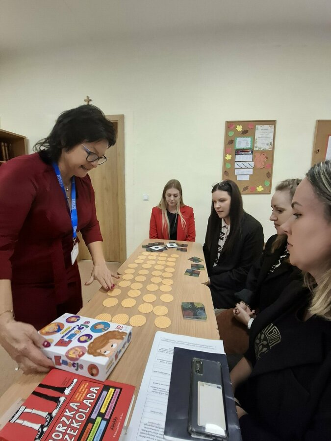 Swym doświadczeniem w pracy z uczniem o specjalnych potrzebach edukacyjnych podzieliły się Beata Mach-Strzelecka i Małgorzata Darocha. Przedstawiły swe metody i inspirujące pomysły. Pracując w grupach, testowano różne gry planszowe skuteczne na wyciszenie ucznia i zmniejszenie napięcia emocjalnego.