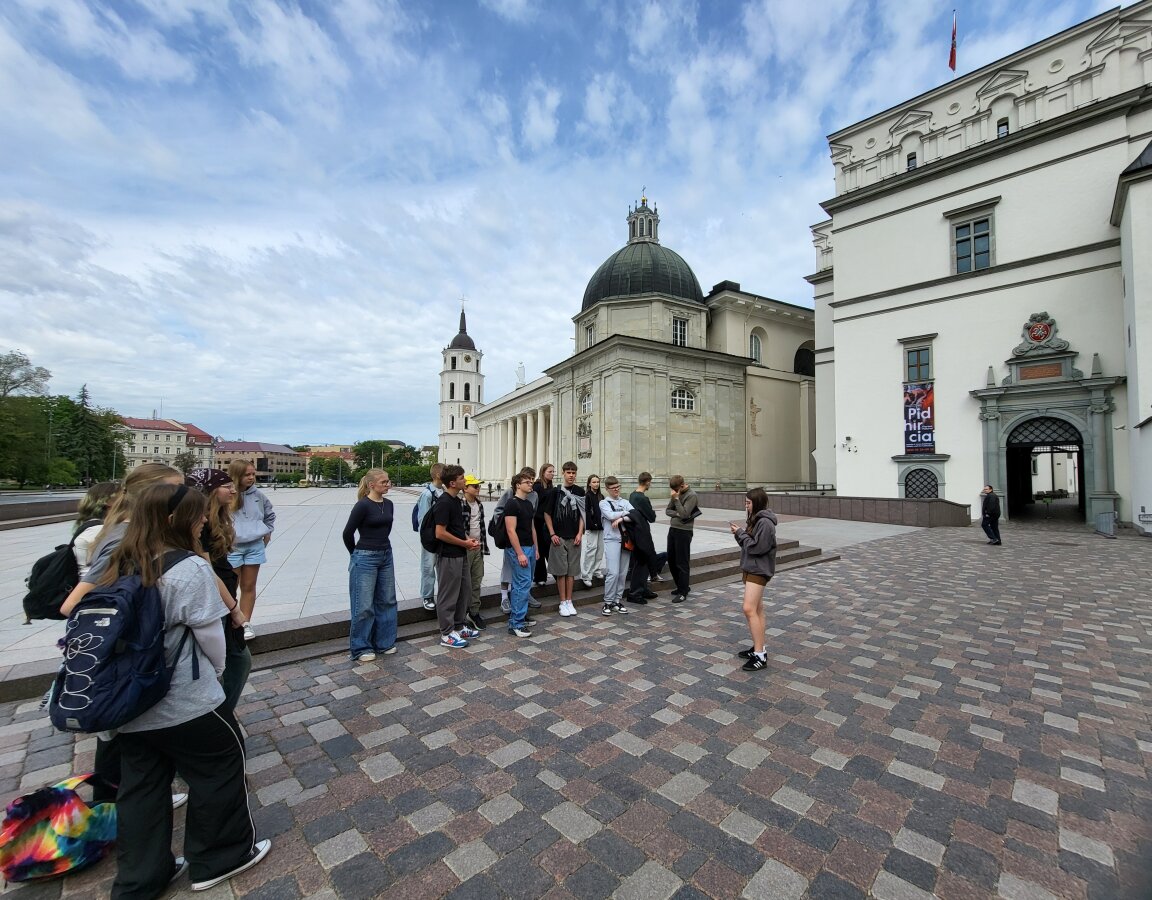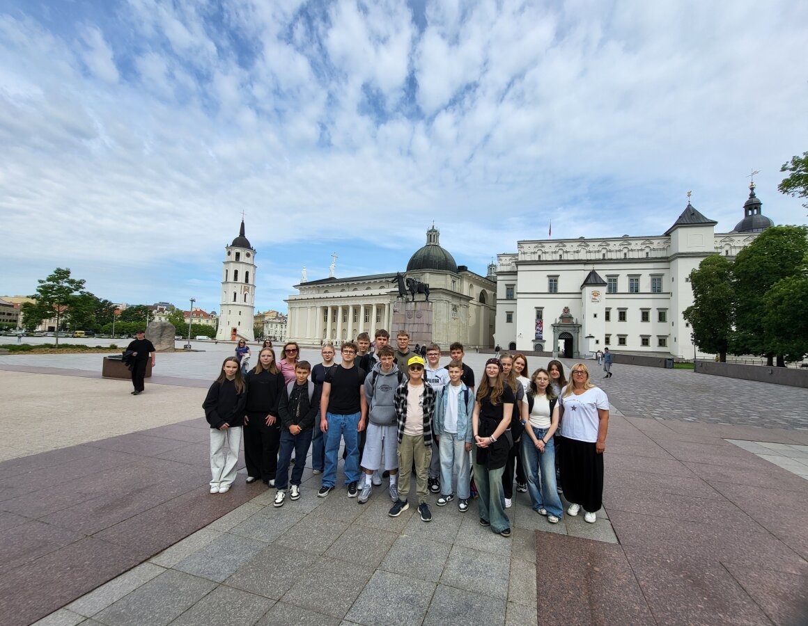 Drugiego dnia odbyła się wycieczka krajoznawcza po Wilnie – stolicy Litwy. Uczniowie wydziału muzycznego opowiedzieli interesujące historie o Ostrej Bramie, Ratuszu Wileńskim, Wieże Giedymina i innych ważnych miejscach. Zostali oni przygotowani przez starszą nauczycielkę solfeżu, teorii muzyki i chóru Tatjanę Kinderevičienė.