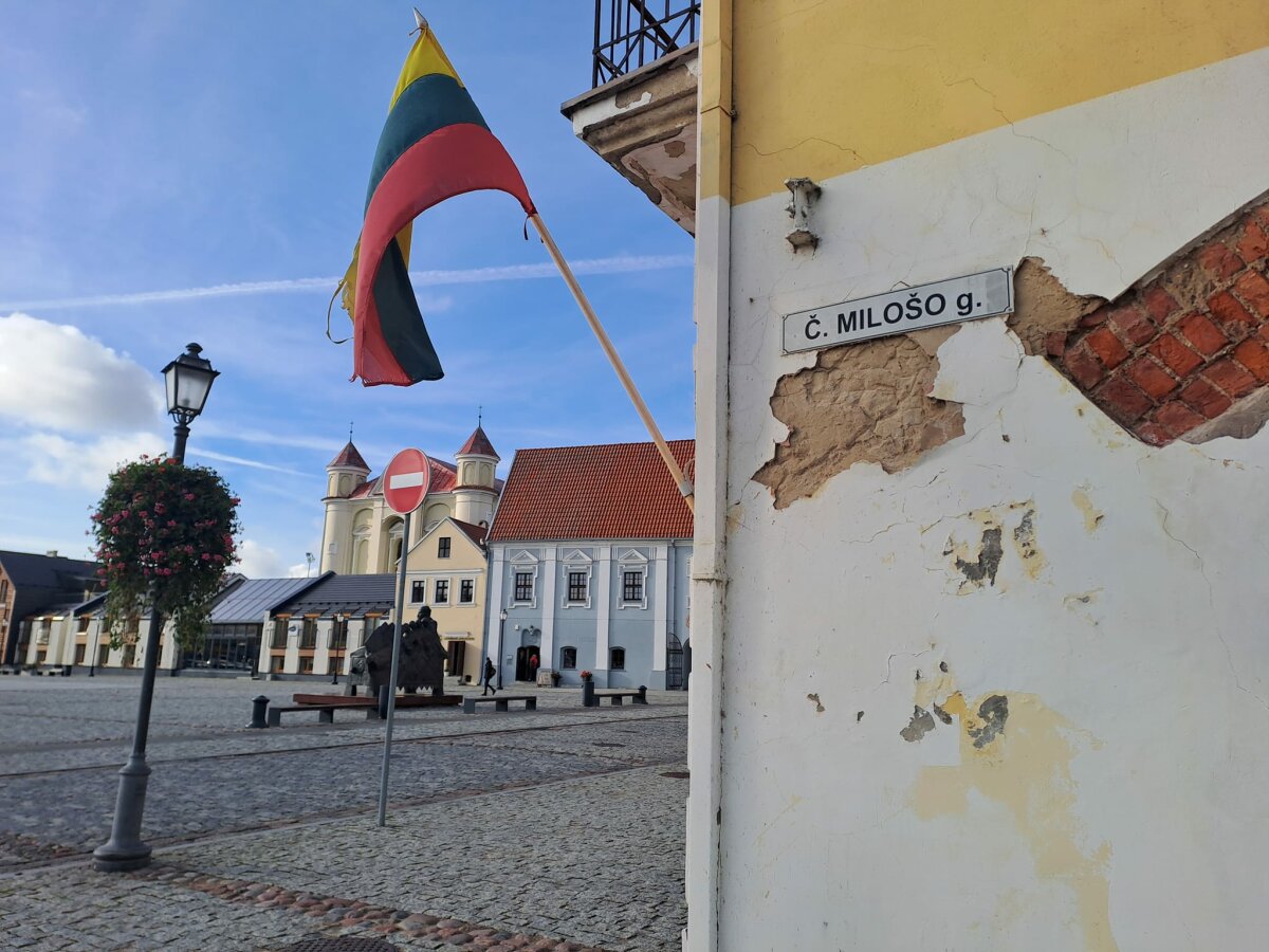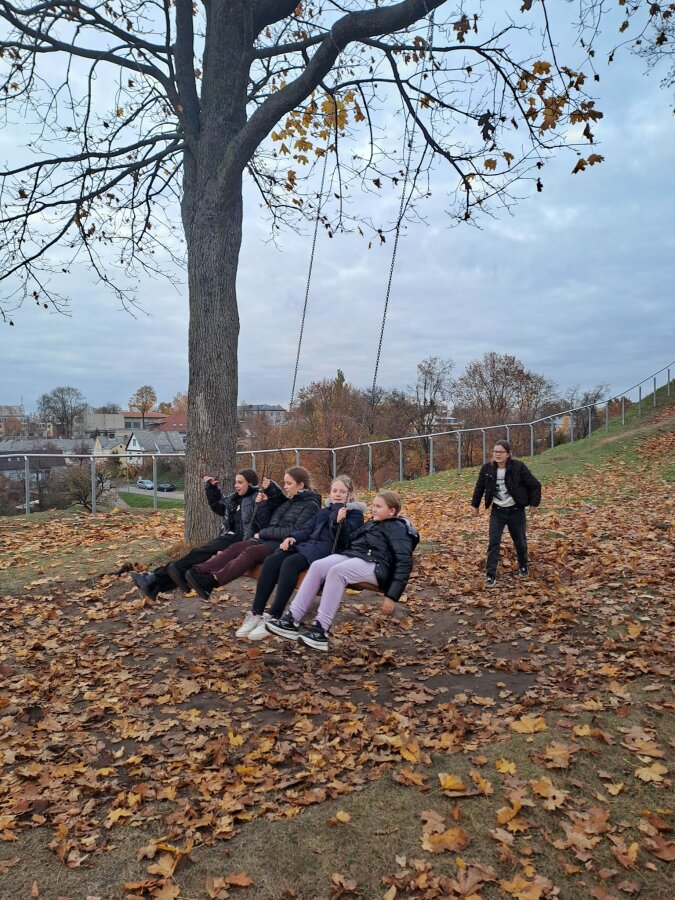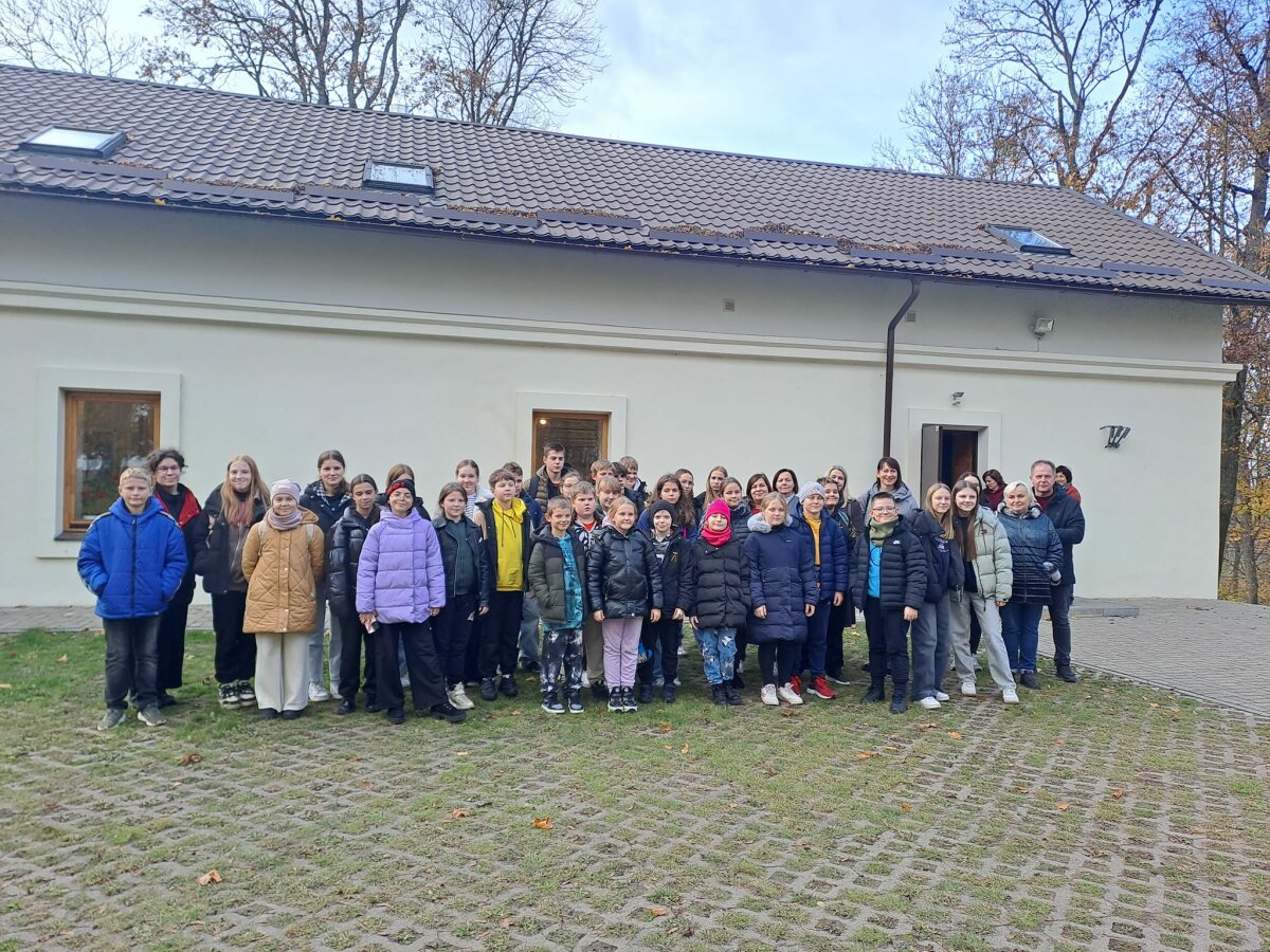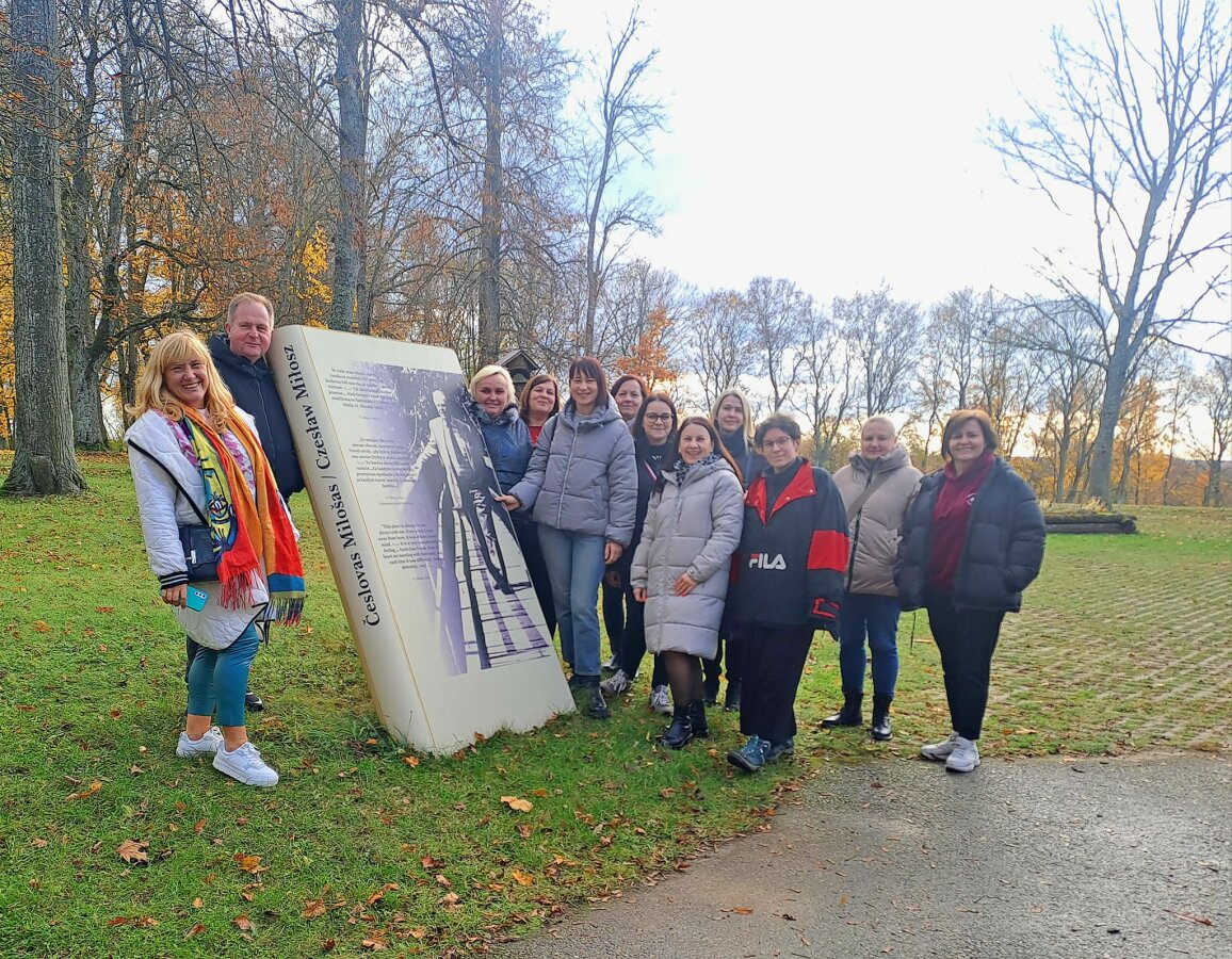 Kolejnym przystankiem naszej podróży były Szetejnie — miejsce, gdzie urodził się i spędził wczesne lata Cz. Miłosz. To tutaj wszystko się zaczęło... Dwór, który kiedyś należał do rodziny matki poety, niestety już nie istnieje, ale park i biały spichlerz wciąż przypominają o dawnych czasach. Czytaliśmy fragmenty „Doliny Issy”, która stanowi swoisty pomnik pamięci miejsc z dzieciństwa poety. Na chwilę refleksji zatrzymaliśmy się także przy dębach, posadzonych przez polskich i litewskich polityków, profesorów, a także samego Cz. Miłosza. Spacerując pośród jesiennych drzew, dotykaliśmy historii i czuliśmy obecność wielkiego poety. Mieliśmy okazję zobaczyć krajobrazy, które inspirowały Cz. Miłosza. Być może to właśnie w tych miejscach, w otoczeniu przyrody, rodziły się najpiękniejsze wersy poezji. Patrząc na te same pola, co on, czuliśmy, że „dotykamy czegoś wielkiego, ponadczasowego“.