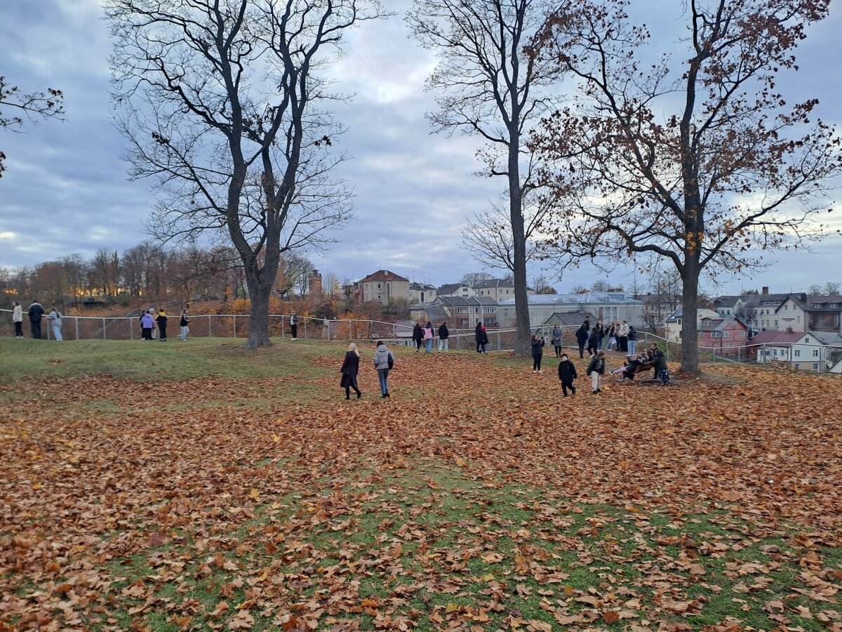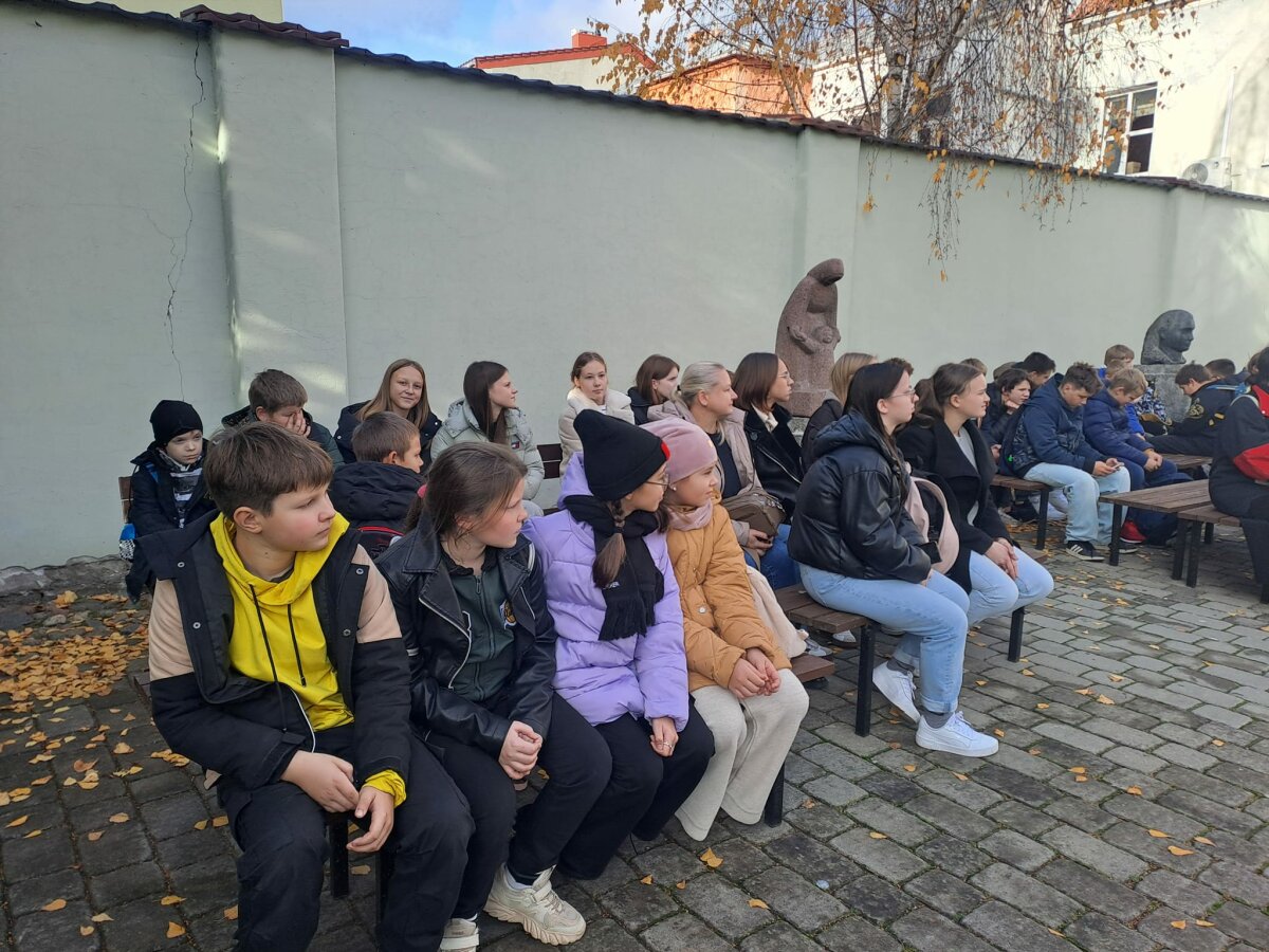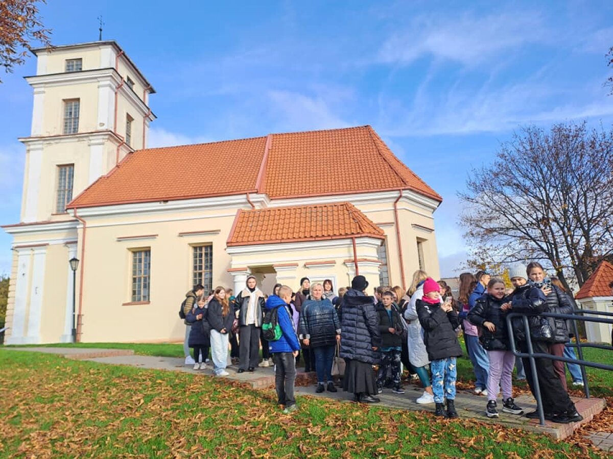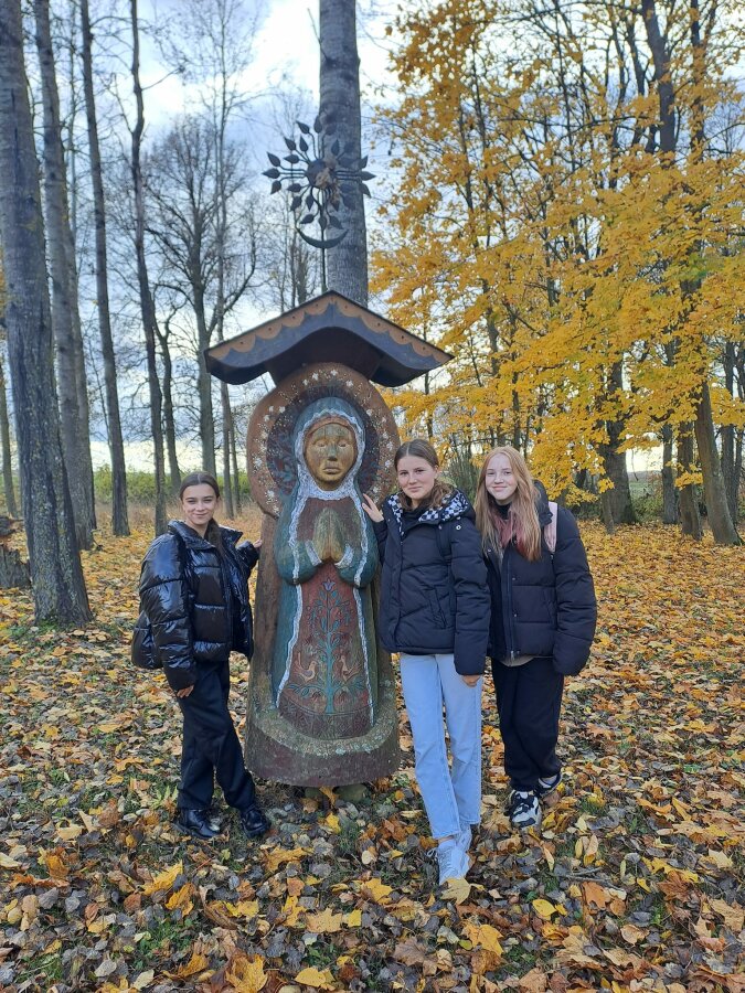 Kolejnym przystankiem naszej podróży były Szetejnie — miejsce, gdzie urodził się i spędził wczesne lata Cz. Miłosz. To tutaj wszystko się zaczęło... Dwór, który kiedyś należał do rodziny matki poety, niestety już nie istnieje, ale park i biały spichlerz wciąż przypominają o dawnych czasach. Czytaliśmy fragmenty „Doliny Issy”, która stanowi swoisty pomnik pamięci miejsc z dzieciństwa poety. Na chwilę refleksji zatrzymaliśmy się także przy dębach, posadzonych przez polskich i litewskich polityków, profesorów, a także samego Cz. Miłosza. Spacerując pośród jesiennych drzew, dotykaliśmy historii i czuliśmy obecność wielkiego poety. Mieliśmy okazję zobaczyć krajobrazy, które inspirowały Cz. Miłosza. Być może to właśnie w tych miejscach, w otoczeniu przyrody, rodziły się najpiękniejsze wersy poezji. Patrząc na te same pola, co on, czuliśmy, że „dotykamy czegoś wielkiego, ponadczasowego“.