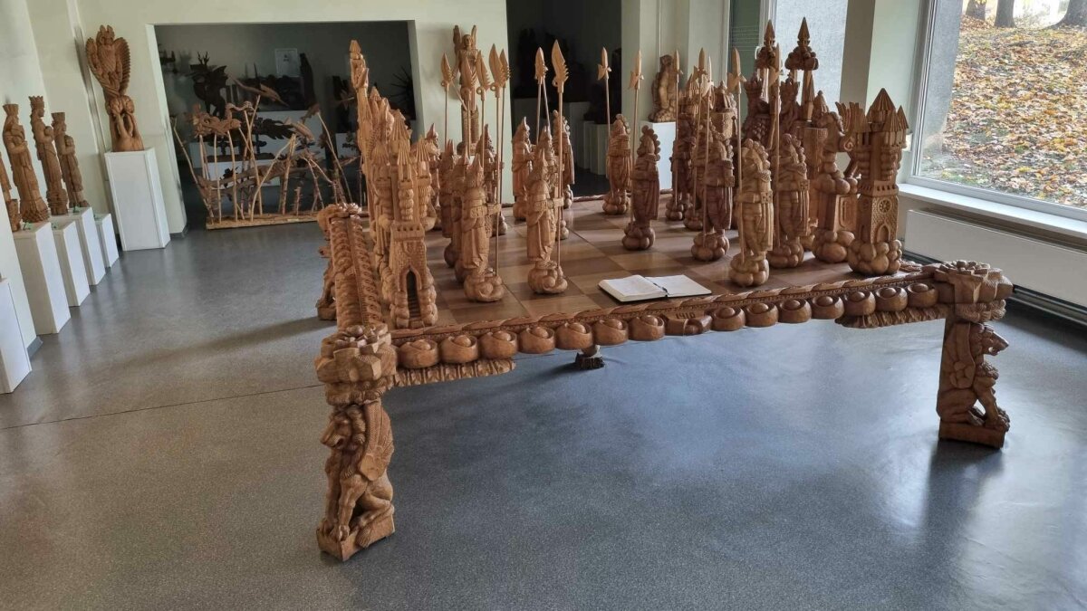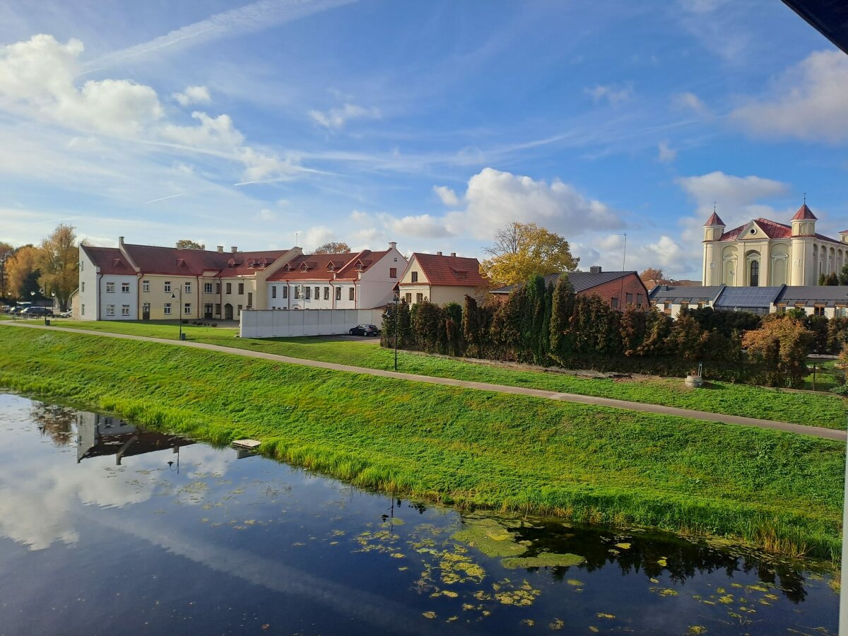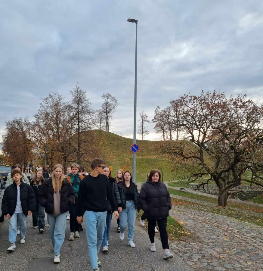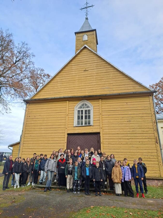 Naszą podróż rozpoczęliśmy od Kiejdan, jednego z najstarszych miast na Litwie, położonego na malowniczym terenie. Jak wyjaśniła pani przewodnik, Irena Duchowska, Kiejdany rozkwitły dzięki rodowi Radziwiłłów, a ich nazwa wywodzi się od nazwiska legendarnego kupca Keidangena, który miał założyć tu wioskę rybacką. Miasto zachowało wiele ze swojego historycznego charakteru — brukowane uliczki, targowiska oraz jedną z perełek architektury – barokowy kościół karmelitów pw. św. Józefa. Co ciekawe, mówi się, że kościół ten został wzniesiony bez użycia choćby jednego gwoździa, co czyni go jeszcze bardziej wyjątkowym i budzi podziw odwiedzających. W Kiejdanach odwiedziliśmy również wystawę prac rzeźbiarza V. Ulevičiusa, zorganizowaną w budynku samorządu miejskiego. Niezwykłe szachy, przedstawiające bitwę pod Grunwaldem, zaskoczyły nas detalami i precyzją wykonania. To niesamowite, jak sztuka potrafi uchwycić historię w formie materialnej, podobnie jak poezja potrafi uchwycić życie w słowach. Następnie udaliśmy się do Gimnazjum „Światłe” (lit. „Šviesioji” gimnazija), którego architektura nawiązuje do wspaniałych budowli wileńskich. Główną ozdobą szkoły jest wewnętrzny dziedziniec pod szklaną kopułą, otoczony łukami przypominającymi Uniwersytet Wileński. Spacerując po mieście, odkrywaliśmy kolejne uroki Kiejdan, szliśmy ulicą Cz. Miłosza, podziwialiśmy krzesło (lit. „Milošofonas”) sprezentowane dla Miłosza jako honorowego obywatela Kiejdan, a zakończyliśmy wizytę pysznym obiadem w „Domu Greja” na starówce.