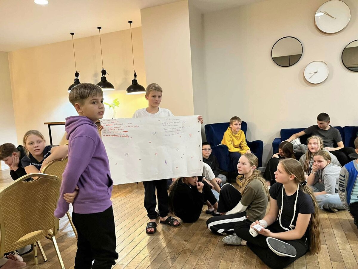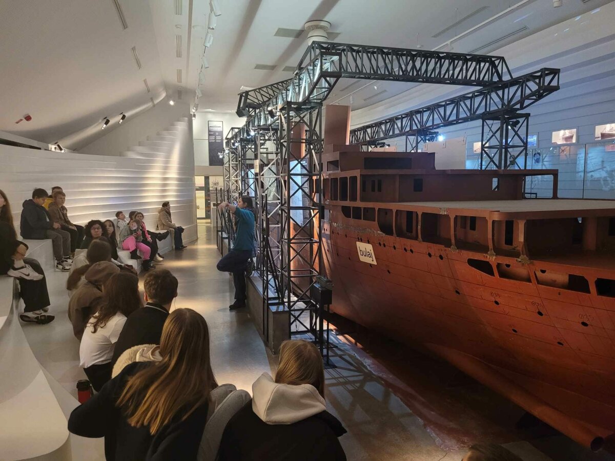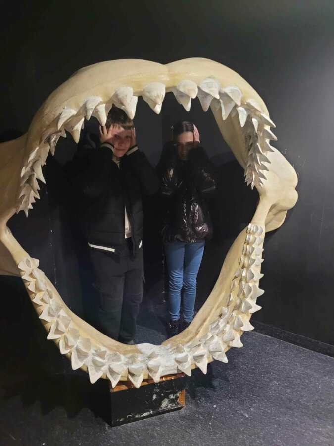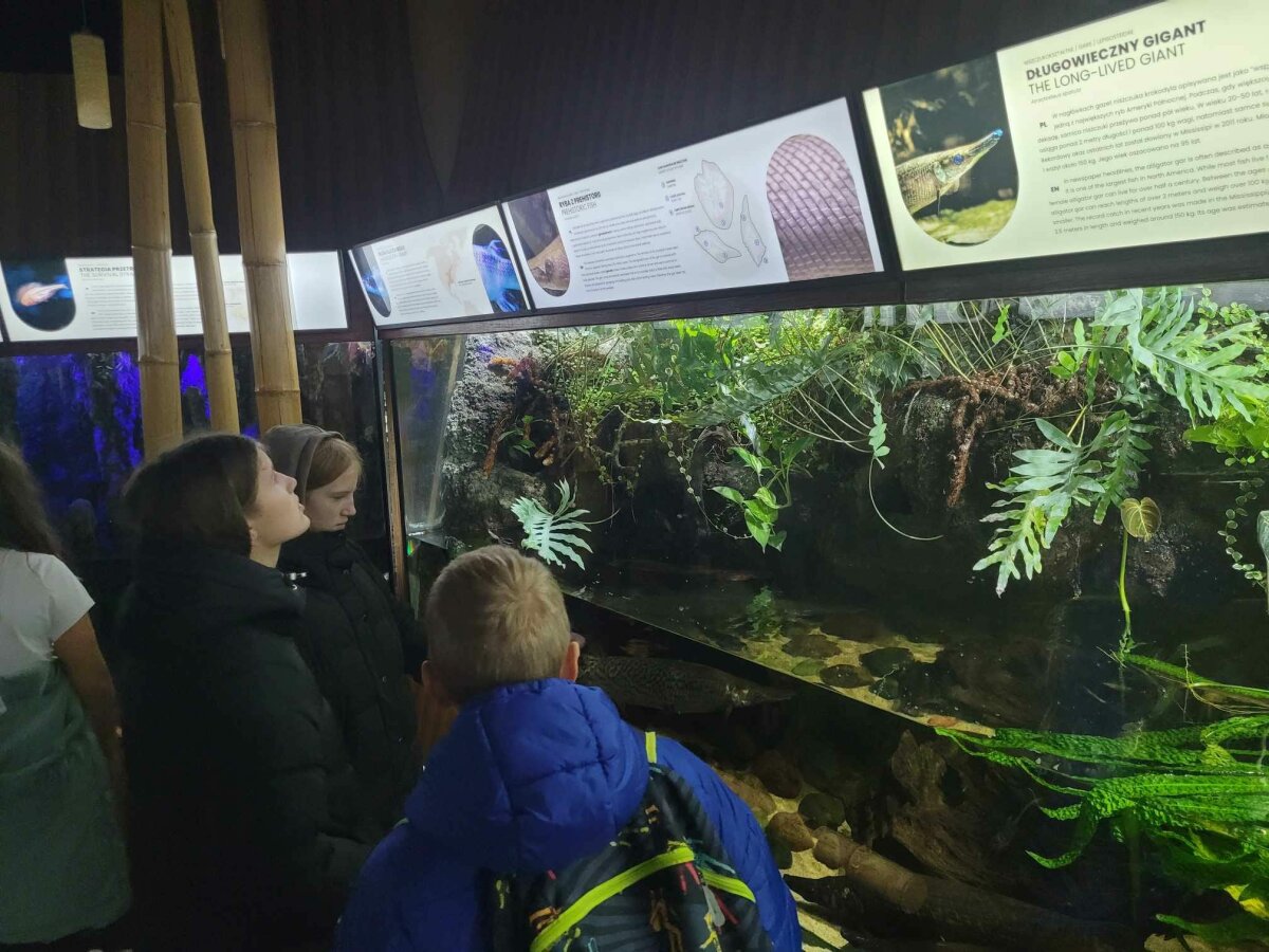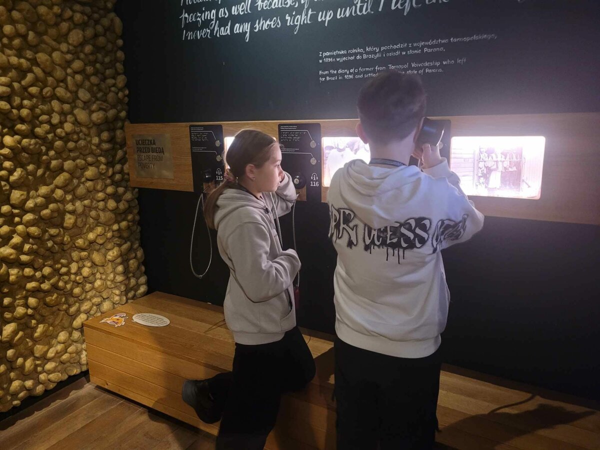 Trzeci dzień edukacyjnej wycieczki po nocnym poszukiwaniu bursztynu rozpoczął się od wizyty w mieście Gdynia, w ogromnym Akwarium. Uczniowie mogli oglądać różnorodne zwierzęta wodne Bałtyku i Atlantyku oraz uczestniczyć w ciekawej edukacji o różnorodności biologicznej i znaczeniu ochrony środowiska. Po zapoznaniu się z fauną morską wszyscy wyruszyli do Muzeum Emigracji w Gdyni, gdzie w interaktywny sposób przedstawione zostały losy Polaków, którzy emigrowali ze swojej ojczyzny. Ekspozycja w tak obszerny sposób opowiadała historię emigracji z ziem polskich w okresie ostatnich 200 lat. Przybliżyła także przeżycia ludzi opuszczających kraj, ich obawy, nadzieje, jak również przyczyny i skutki emigracji. Była to opowieść o ludziach wyruszających w podróż w nieznane, o przemianach cywilizacyjnych i gospodarczych, których doświadczyli, o legendzie Gdyni i polskich transatlantykach. Uczestnicy wycieczki zapoznali się z historią wybitnych Polaków-emigrantów, znanych za granicą, a często zapomnianych w ojczyźnie i opowieść o Polonii – ludziach kultywujących kulturę i tradycję kraju swoich przodków. Dla uczniów nie był to nowy temat, w końcu jest to opowieść o powrotach, o polskiej tożsamości i przeróżnych jej obliczach, o czym tak często mówi się w szkołach na Wileńszczyźnie. Wychowankowie zobaczyli dawne eksponaty, obejrzeli filmy dokumentalne oraz zdjęcia, które przybliżyły im historię emigracji naszych rodaków. Po całym dniu poznawania i wchłaniania nowej informacji uczestnicy wycieczki udali się do centrum Zoltar, aby doświadczyć VR, pograć w laser tag oraz mile spędzić czas.