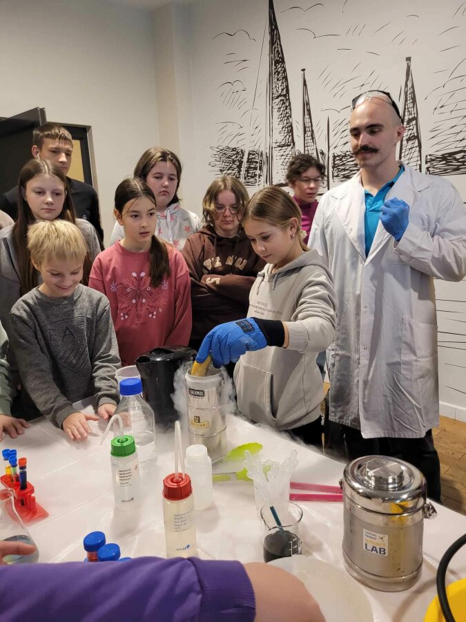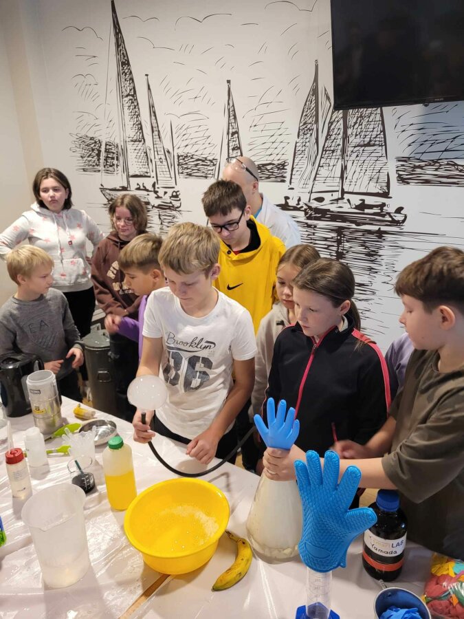 Po nietradycyjnej lekcji historii uczniowie udali się do centrum Hevelianum. Jest to centrum nauki łączący ją z zabawami. W interaktywny i eksperymentalny sposób można tam zapoznać się z zasadami fizyki, ciekawostkami chemii oraz podstawami ekologii.