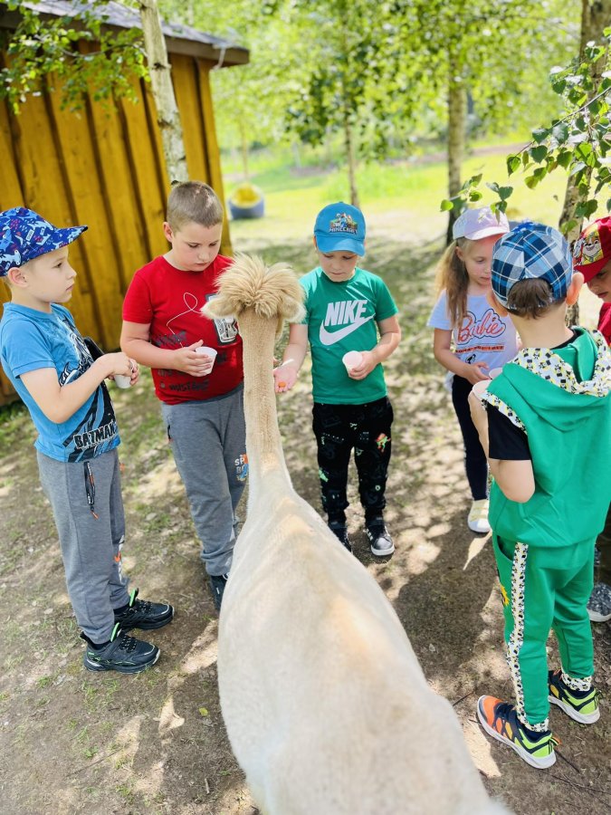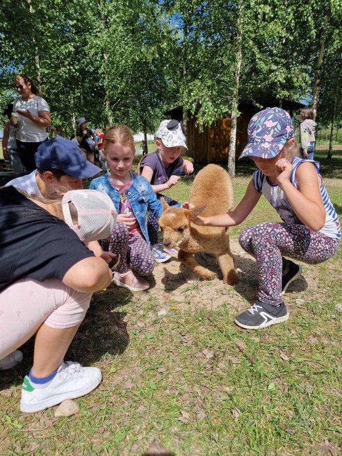 Drugiego dnia mieliśmy wycieczkę do gospodarstwa alpak w Suderwie, gdzie dzieci miały przyjemną terapię przebywania ze zwierzętami w ścisłym kontakcie. W trakcie karmienia czworonogich marchewkami, dzieci dowiedziały się wielu interesujących wiadomości o alpakach, a także każdy uczestnik mógł pospacerować z alpakami po łące.