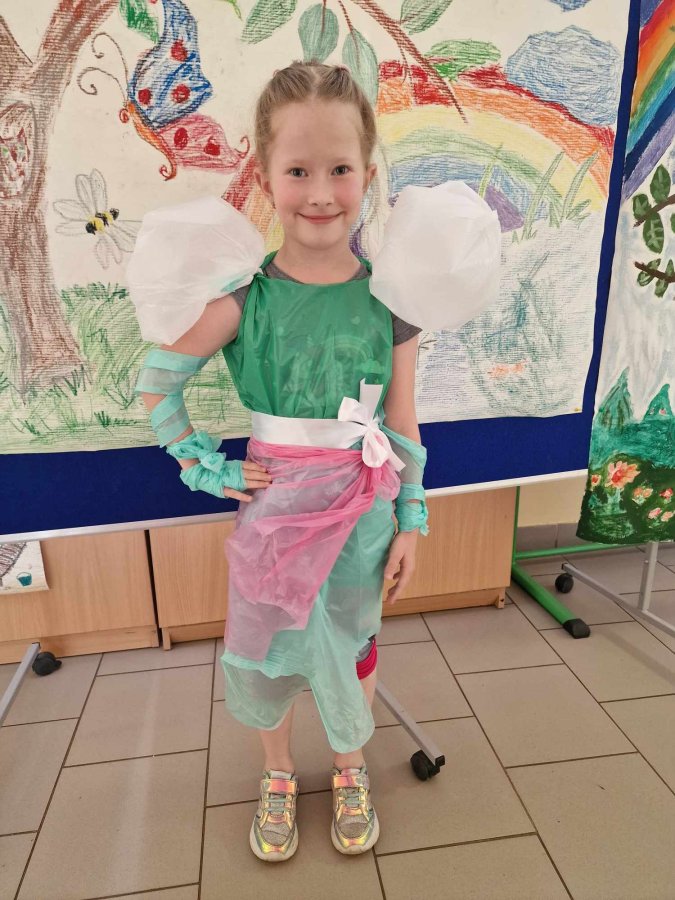 Ostatnie dni półkolonii przebiegły pod hasłem „Dzień plastyki“ i „Dzień kreatywności“. Na zajęciach plastycznych uczestnicy obozu poznali różne techniki plastyczne i wykorzystali je do tworzenia własnych prac, a na zakończenie mieli stworzyć ubrania z worków na śmieci i zaprezentować swoją modę z recyklingu. Była to świetna zabawa.
