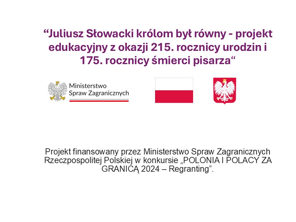 Gimnazjum im. Juliusza Słowackiego w Bezdanach realizuje projekt edukacyjny pod tytułem „Juliusz Słowacki królom był równy”, przygotowany z okazji dwóch ważnych rocznic: 215. rocznicy urodzin oraz 175. rocznicy śmierci jednego z najwybitniejszych polskich poetów romantycznych. Projekt finansowany przez Ministerstwo Spraw Zagranicznych Rzeczpospolitej Polskiej w konkursie „POLONIA I POLACY ZA GRANICĄ 2024 – Regranting” i jest realizowany przez Fundację „Pomoc Polakom na Wschodzie” im. Jana Olszewskiego.
