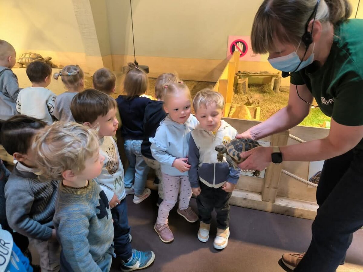W zoo dzieci zobaczyły małpy, żółwie, kolorowe papugi i wiele innych zwierząt. Były zachwycone obserwując, jak małpki skaczą i bawią się, żółwie powoli spacerują po swoim wybiegu, a papugi zachwycają intensywnymi barwami i głośnymi głosami.